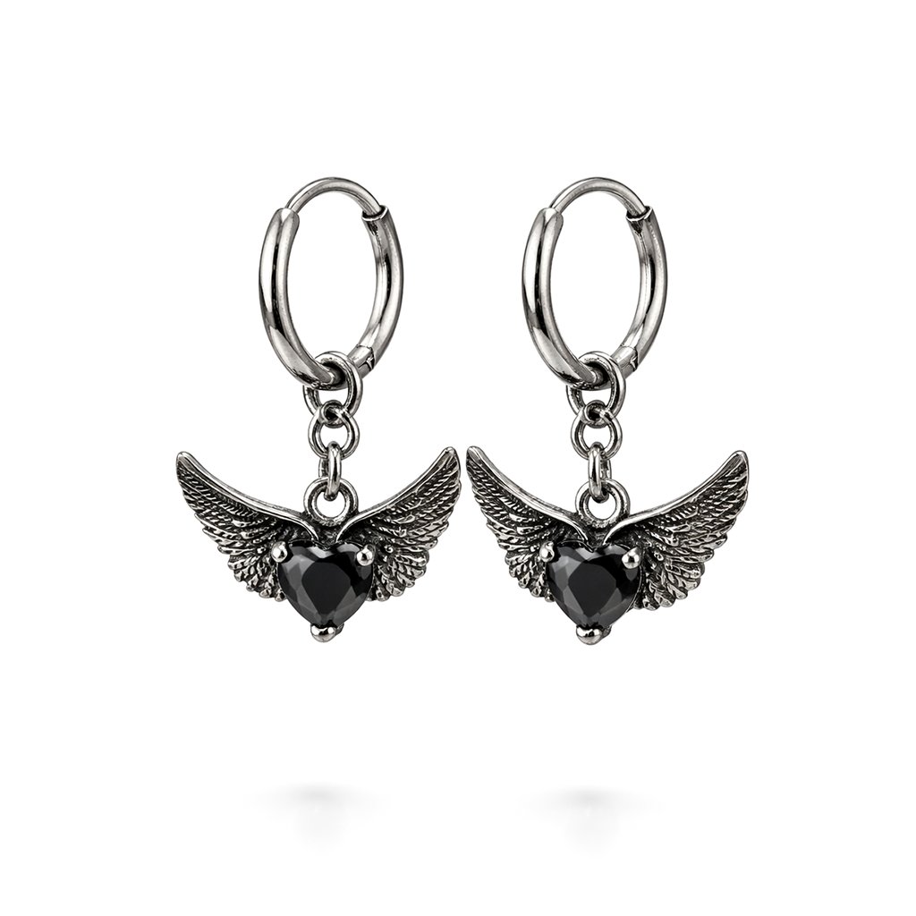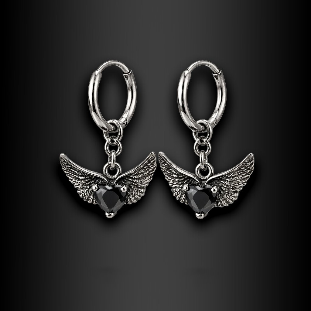 Dámské náušnice s okřídleným srdcem v temně elegantním pojetí