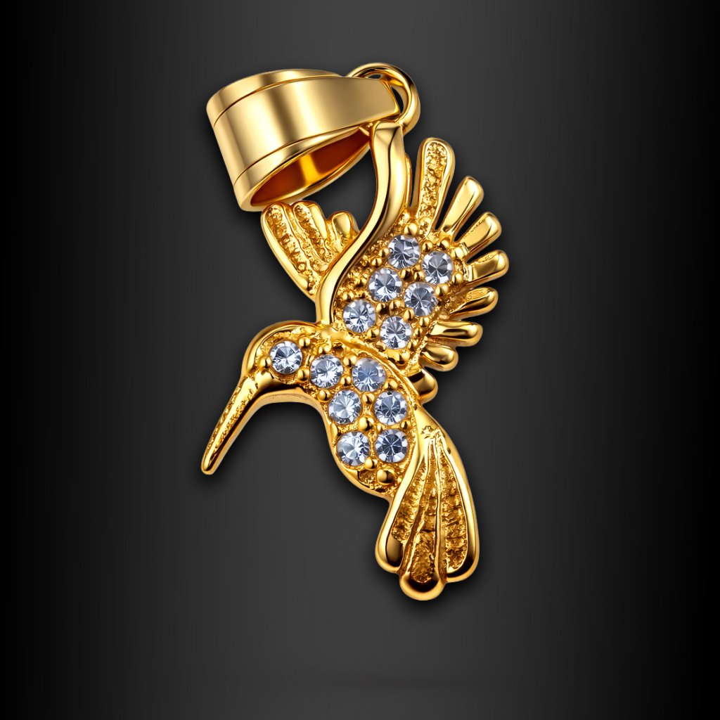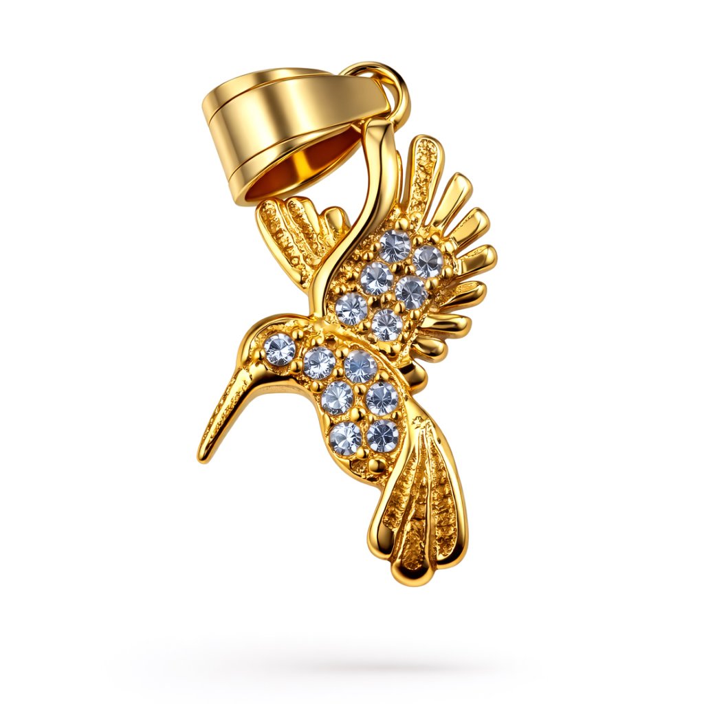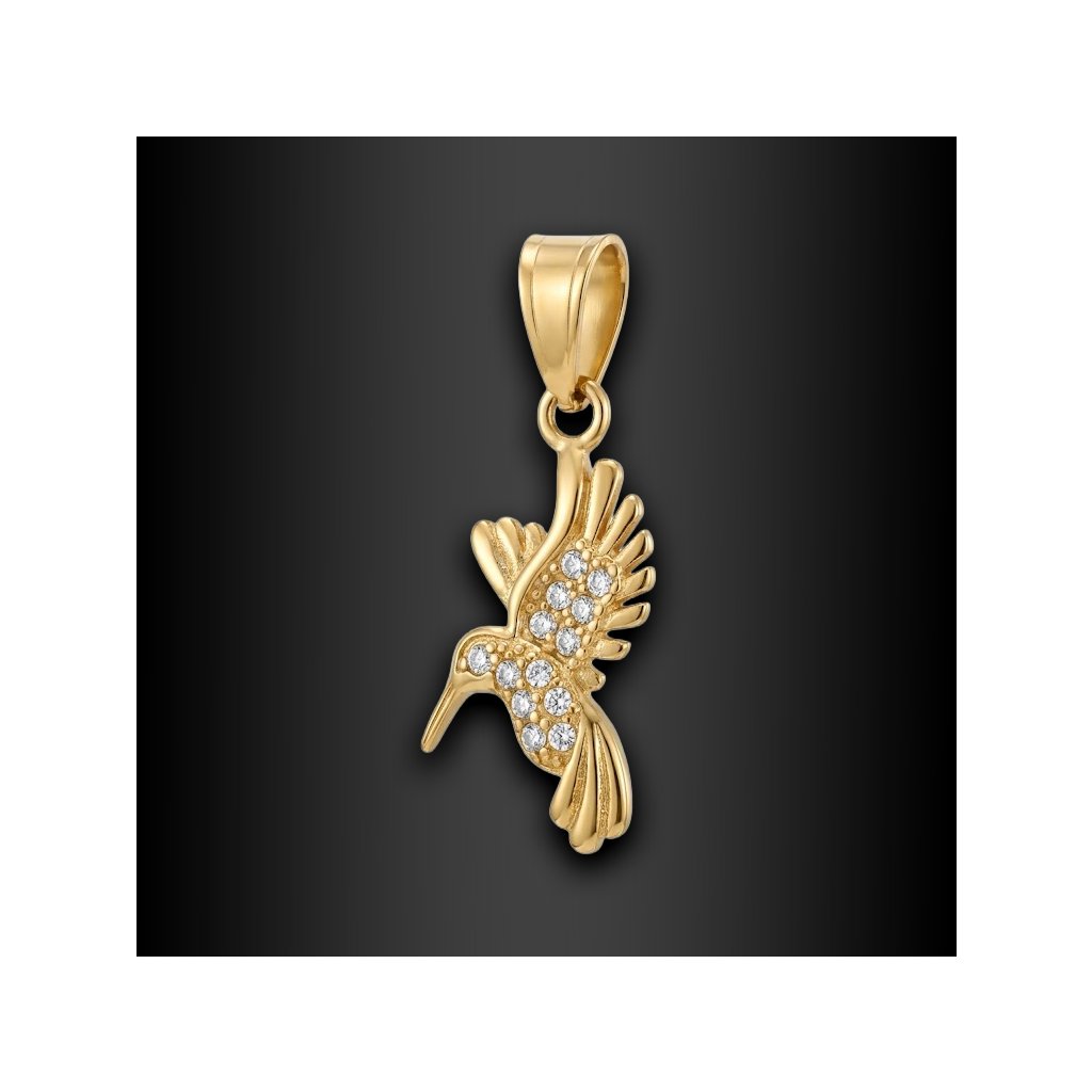 Althaea – jemný dámský ocelový přívěsek kolibřík se zirkony, zlaté provedení ♀️ DG Šperky