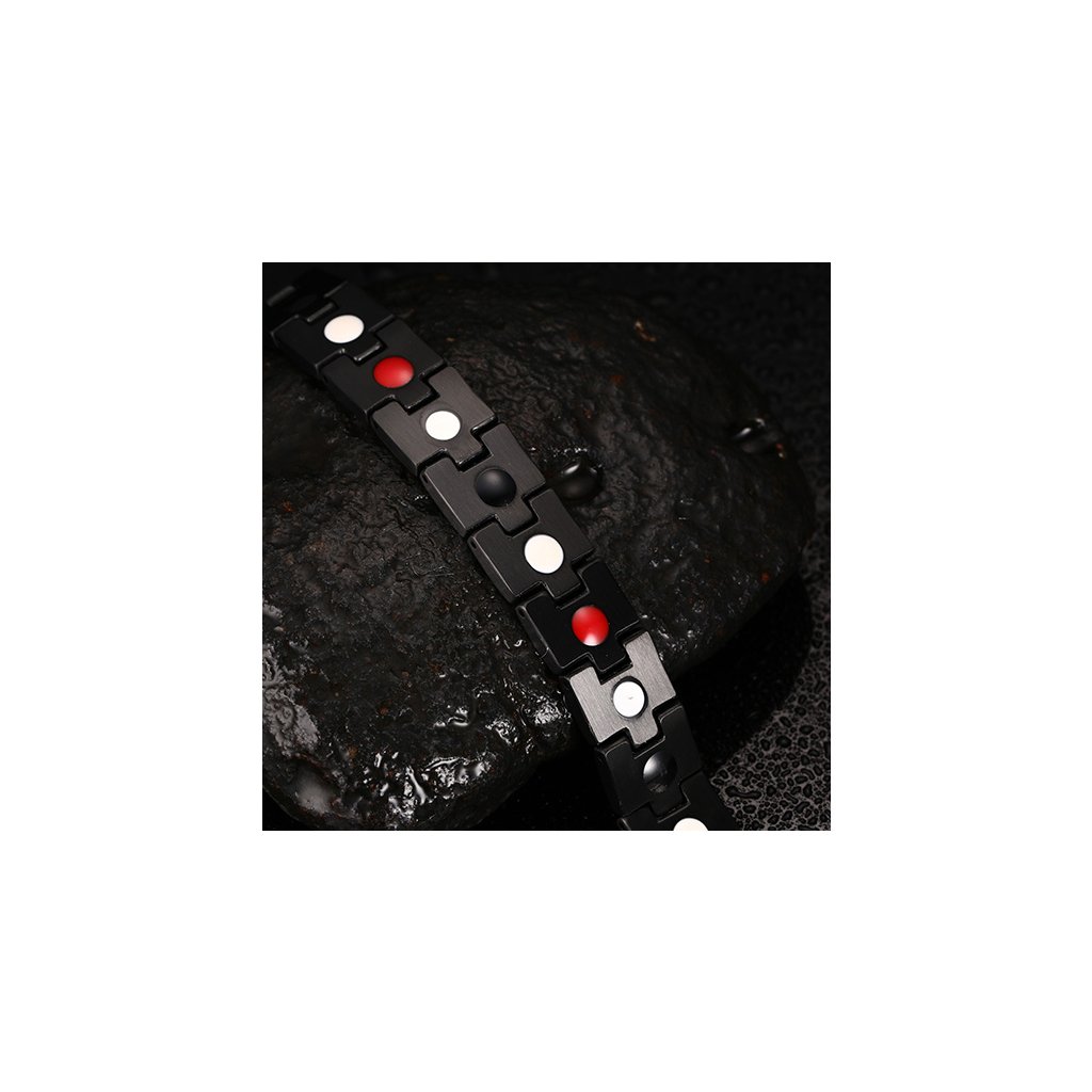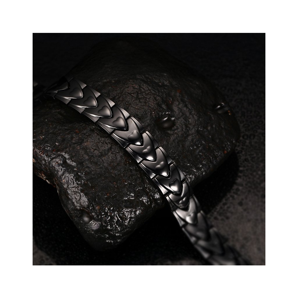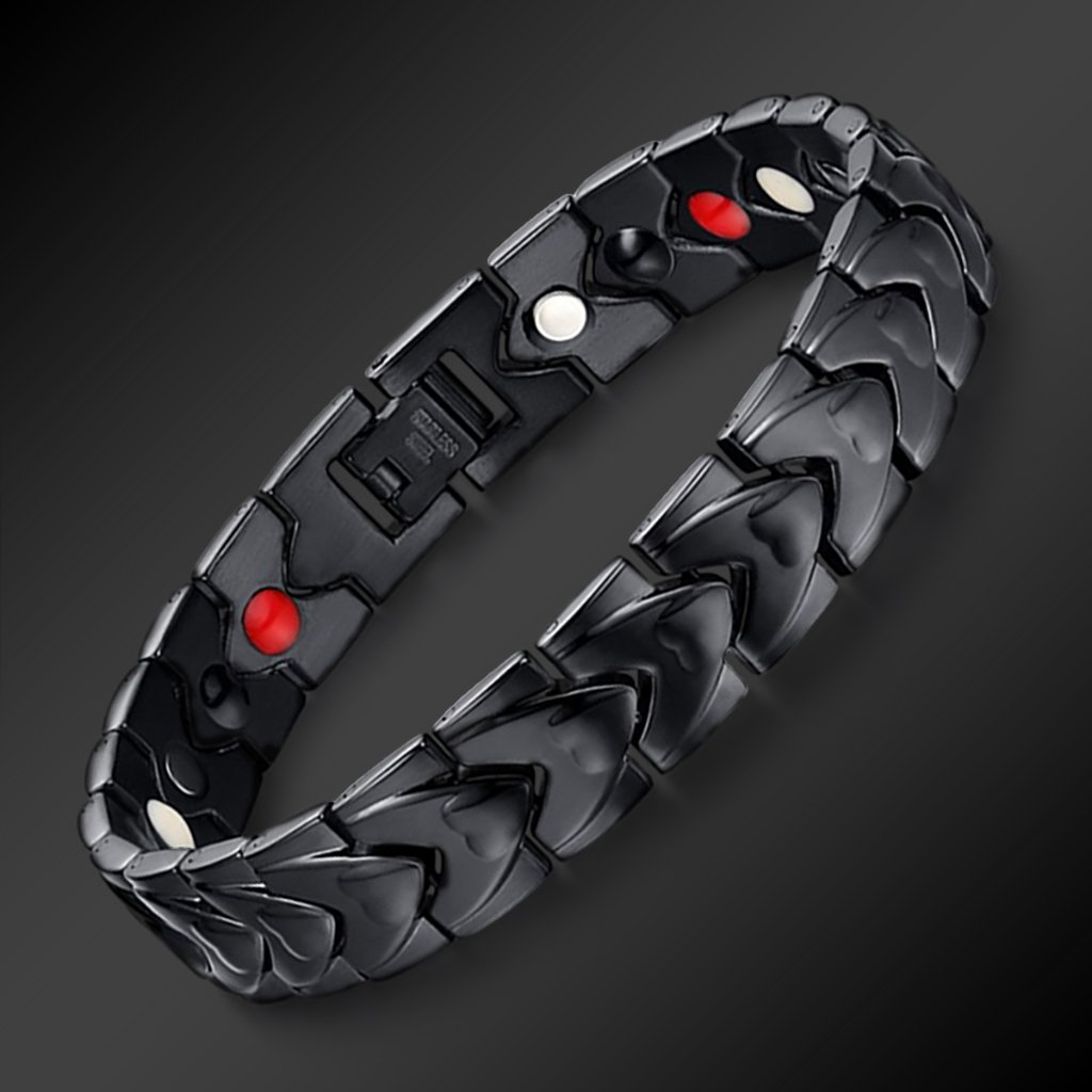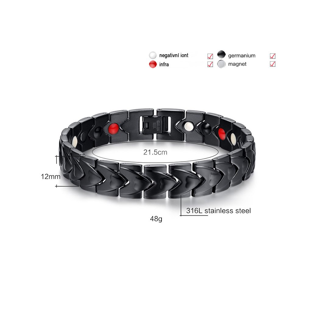 Argonn je robustní pánský náramek z prémiové chirurgické oceli 316L, který okamžitě upoutá pohledy svým matným černým provedením a masivním vzhledem. Na první pohled působí jako symbol nezdolné síly a autority. Uvnitř náramku se nachází speciální prvky, které jsou dle tradice spojovány s pozitivními účinky na vitalitu a regeneraci.