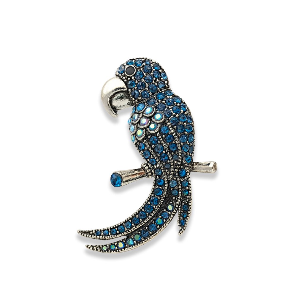 Nápadná brož ve tvaru papouška, osázená hlubokými modrými krystaly, které zachycují světlo s každým pohybem. Symbol exotické krásy, elegance a sebevědomí 🖤 Exkluzivně na DG Šperky