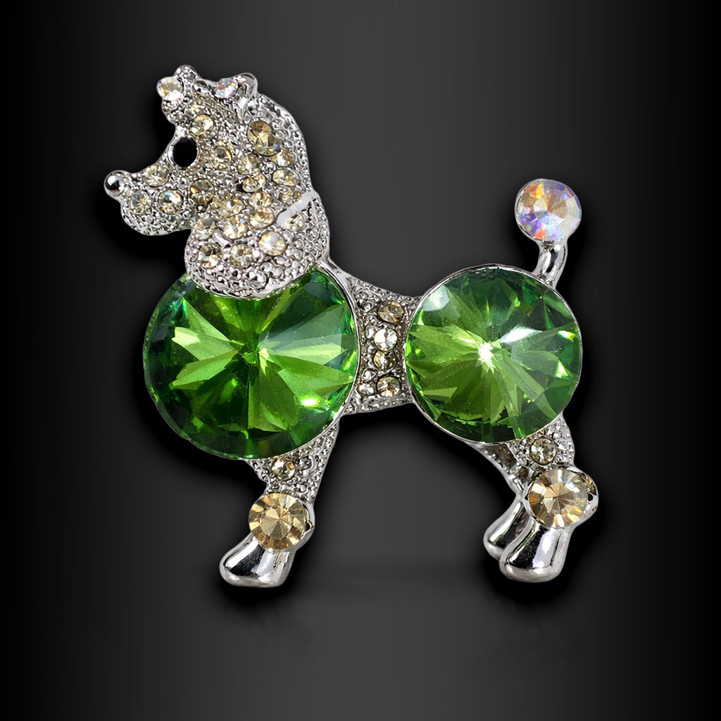 Dámská brož Barbone Verde – pudl zdobený zirkony ve stylu luxusního psího šperku ♀️ DG Šperky