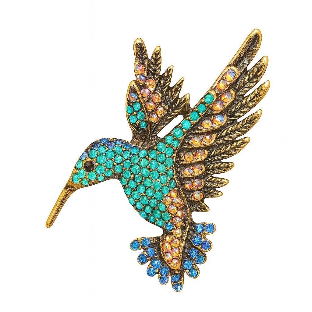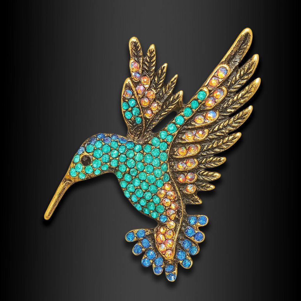 Třpytivá brož ve tvaru kolibříka v odstínech tyrkysu, zlaté a královsky modré – výrazný šperk plný života a svobody 🖤 Exkluzivně na DG Šperky