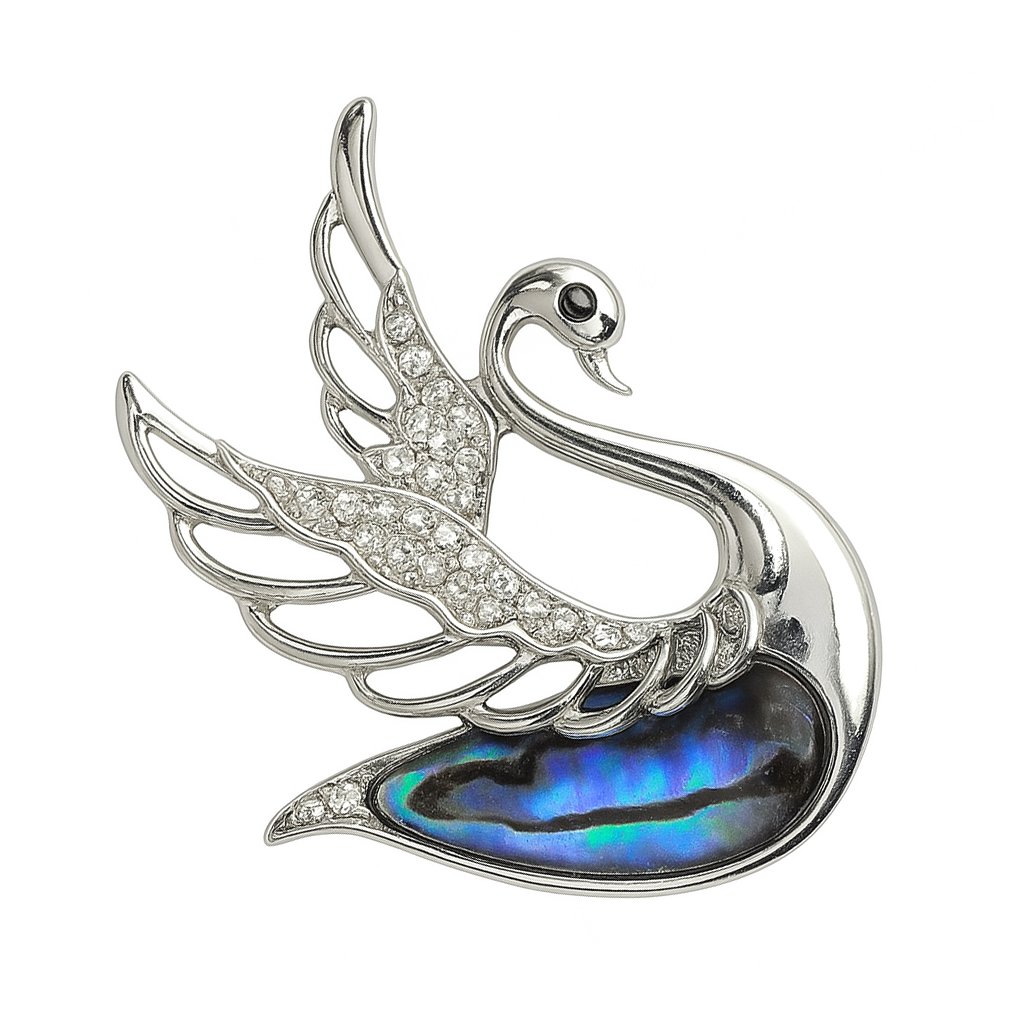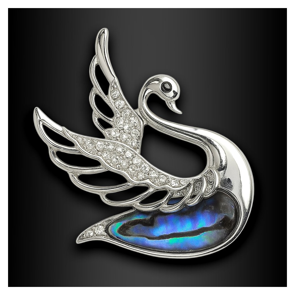 Krása v pohybu – sofistikovaná stříbrná brož ve tvaru ladné labutě s duhovou perletí a třpytivými kamínky 🖤 Exkluzivně na DG Šperky