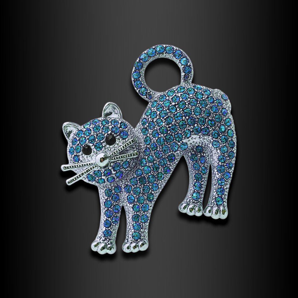 Okouzlující brož ve tvaru kočky, která se třpytí v tónech modro-fialových krystalů s nádechem tajemné aurory. Elegantní, hravá a dokonale ženská – přesně jako její nositelka 🖤 Exkluzivně na DG Šperky
