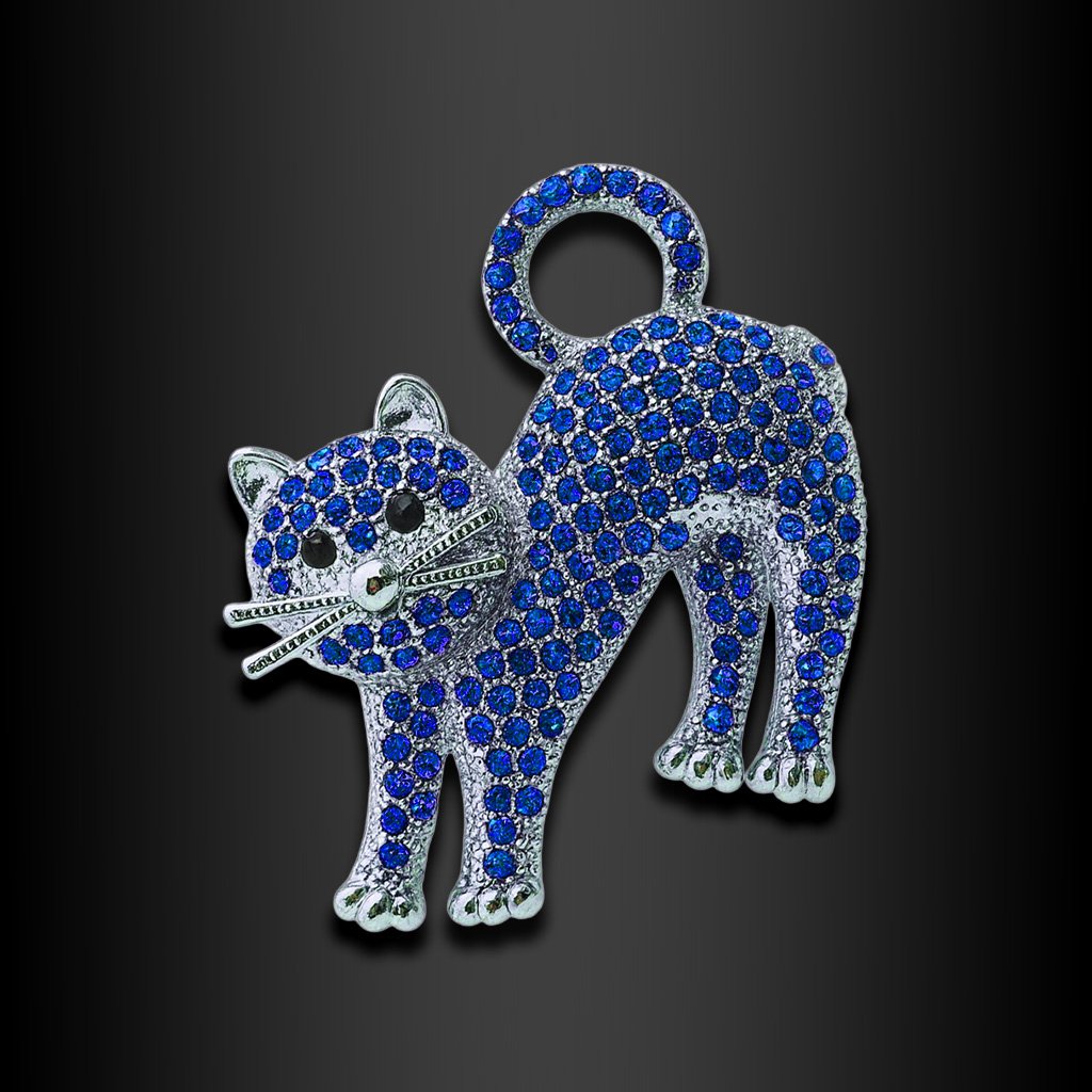 Elegantní brož ve tvaru kočky zářící safírově modrými krystaly, které vyjadřují klid, moudrost a sebejistotu. Šperk, který dokonale spojuje eleganci a hravost – stejně jako samotná kočka 🖤 Exkluzivně na DG Šperky