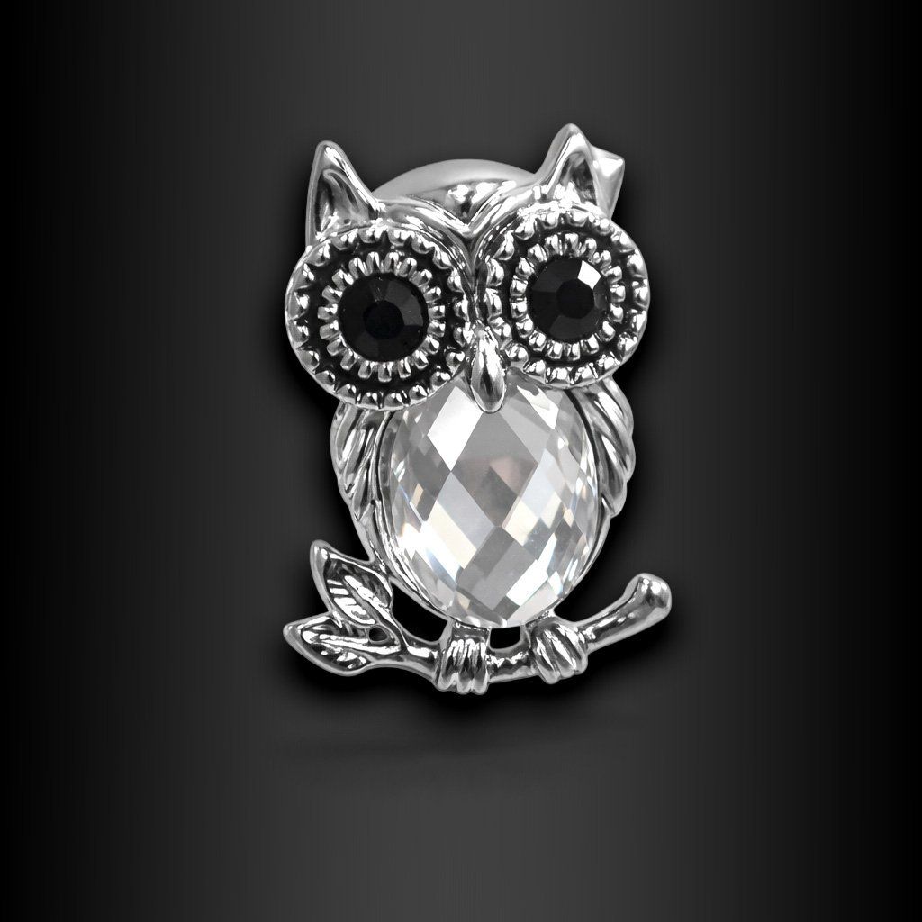 Brož Kyrelia – sova moudrosti s velkým fasetovým krystalem a vintage patinou, která promlouvá bez jediného slova