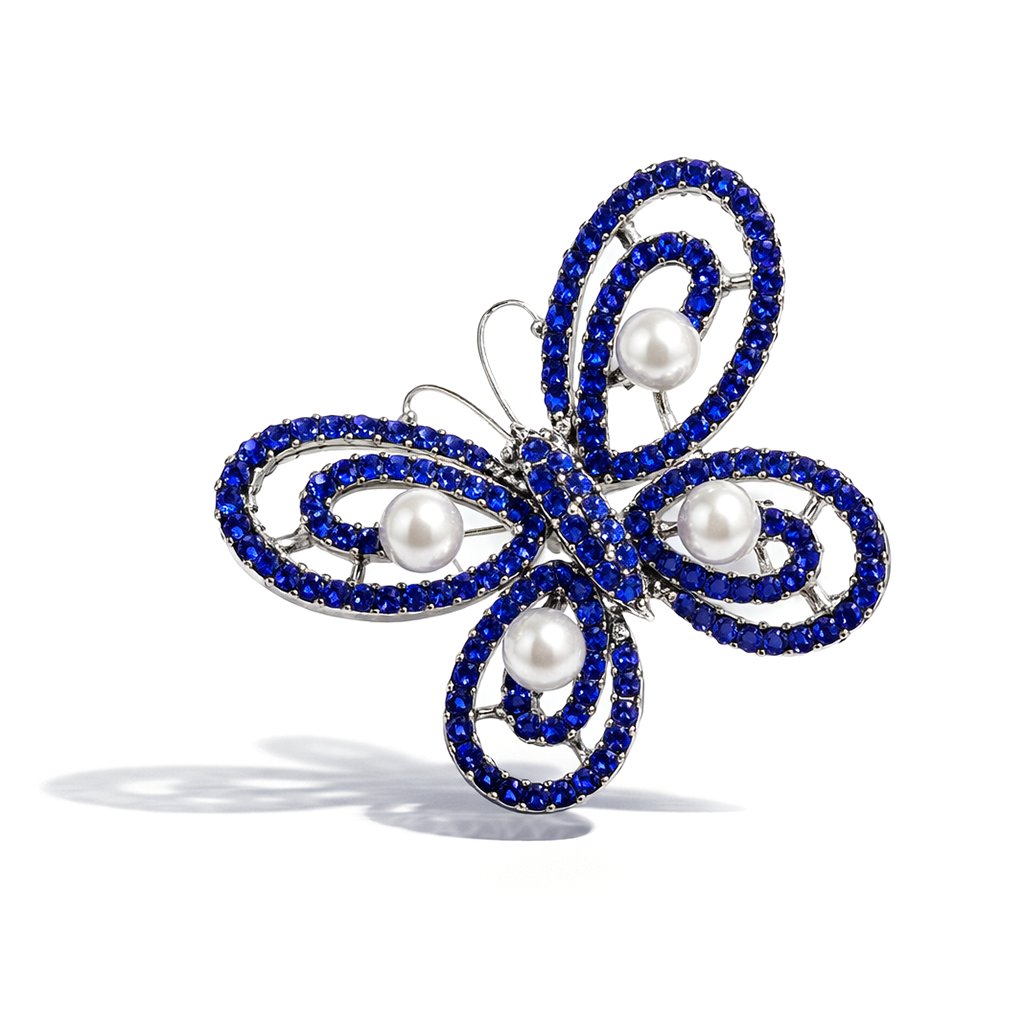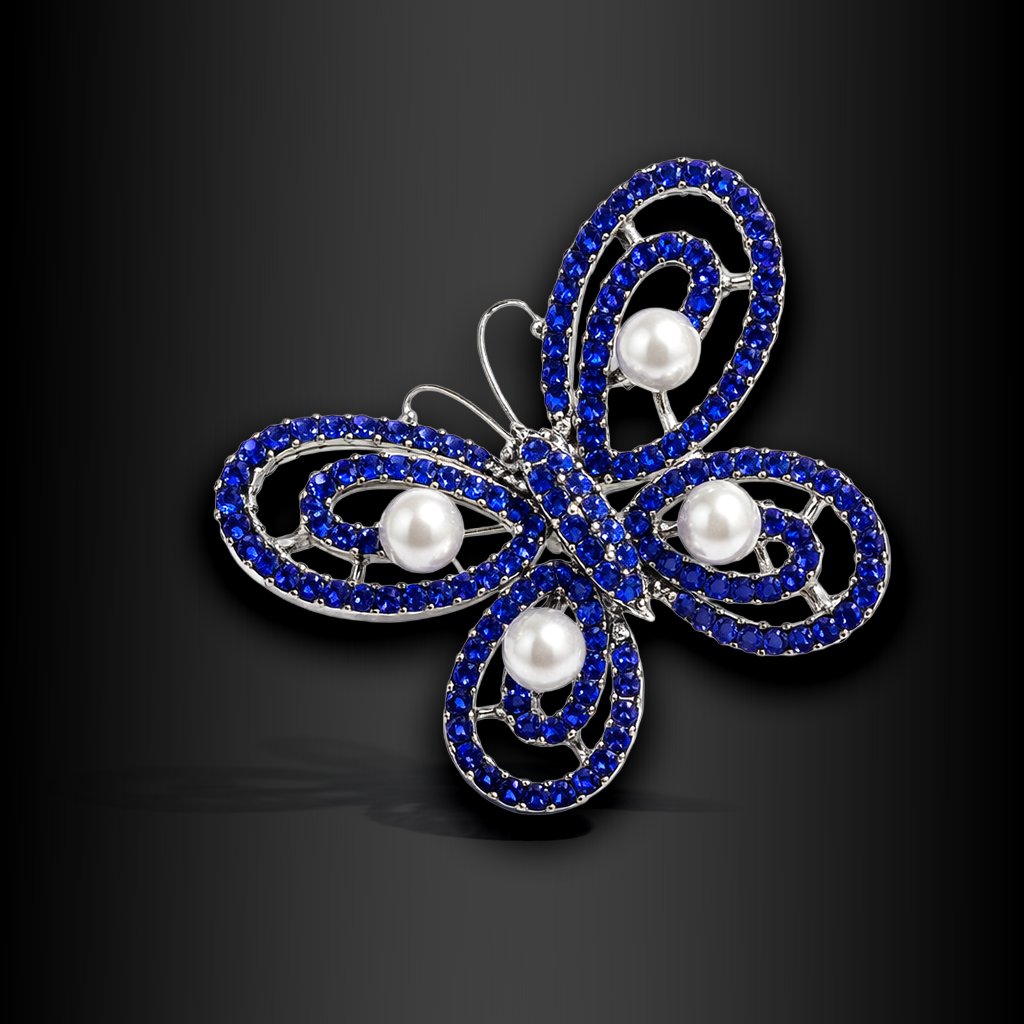 Dámská brož Marvia Blue ve tvaru motýla se zirkony a perličkami ♀️ DG Šperky