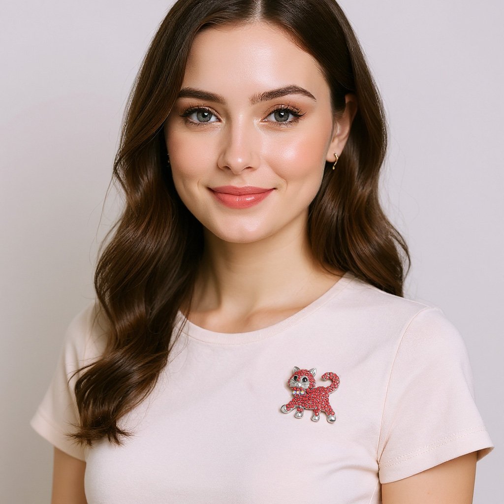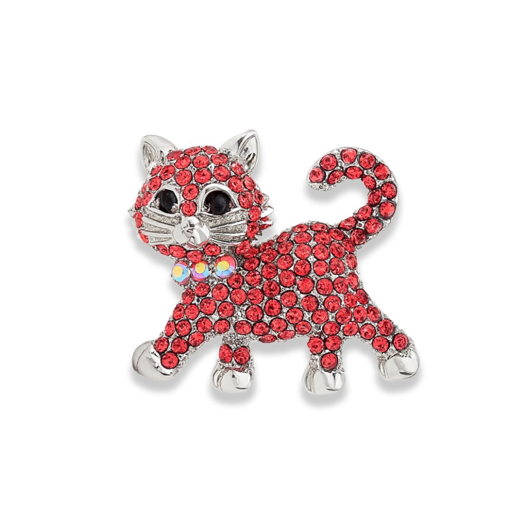 Roztomilá brož ve tvaru kočičky osázená zářivými červenými krystaly. Stylový doplněk, který vyčaruje úsměv 🖤 Exkluzivně na DG Šperky