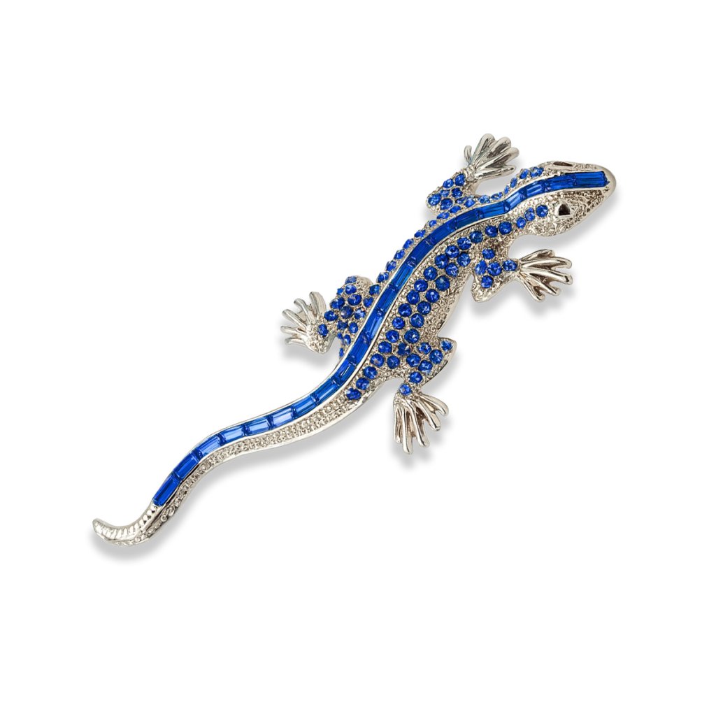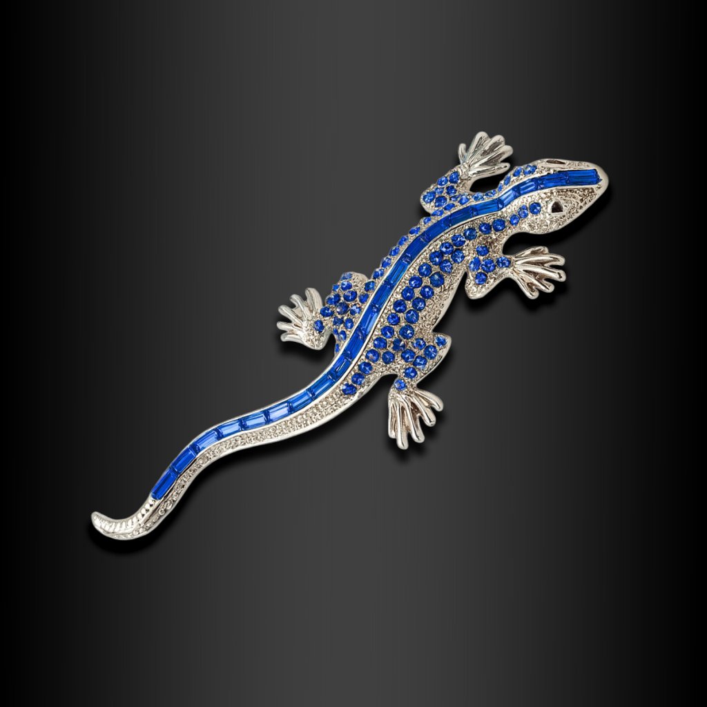 Luxusní brož ve tvaru ještěrky s modrými krystaly – šperk, který symbolizuje sílu, obnovu a ženskou energii. Září jako kapky moře zachycené ve slunečním světle 🖤 Exkluzivně na DG Šperky