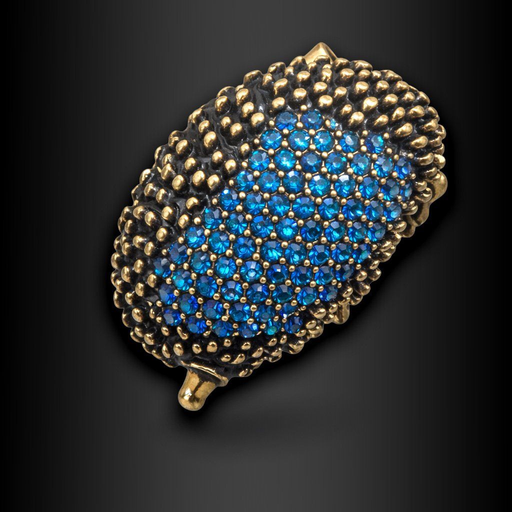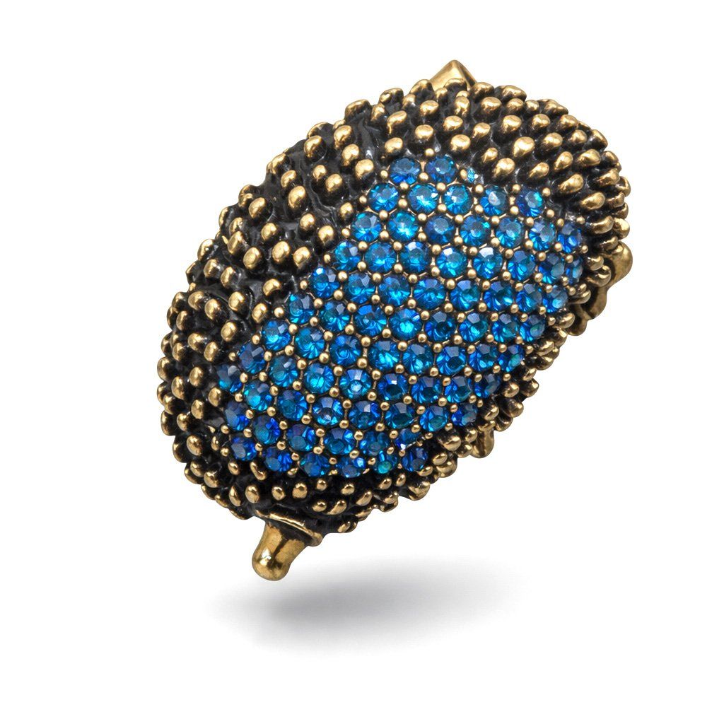 Dámská brož Riccina Antic gold s modrými krystaly – ježek s pavé osazením ♀️ DG Šperky