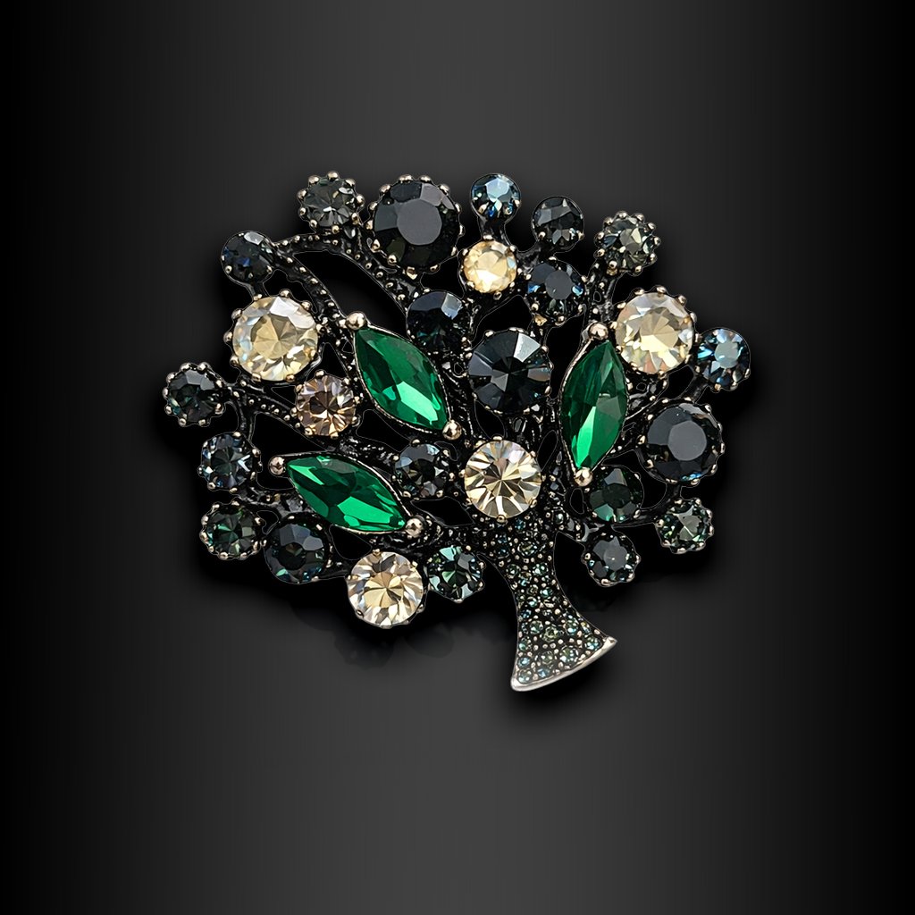 Dámská brož Rosavea zaujme na první pohled bohatým zpracováním a symbolikou stromu života. Precizně osazené zirkony v tmavších i světlejších tónech vytvářejí luxusní kontrast a hloubku. Brož je nickel free a barevné složení zirkonů se může mírně lišit, což podtrhuje její jedinečnost 🖤 Exkluzivně na DG Šperky
