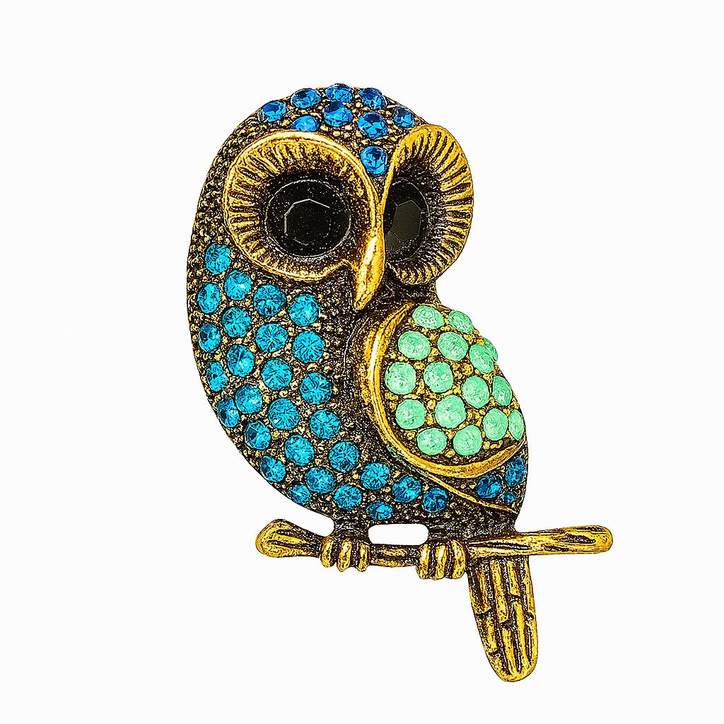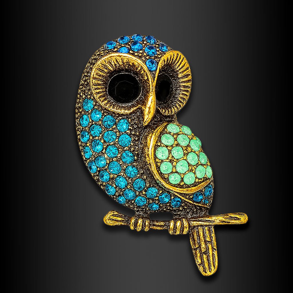 Brož Sahira Blue – okouzlující sova v modro-zeleném provedení bez obsahu niklu ♀️ DG Šperky + Doprava zdarma