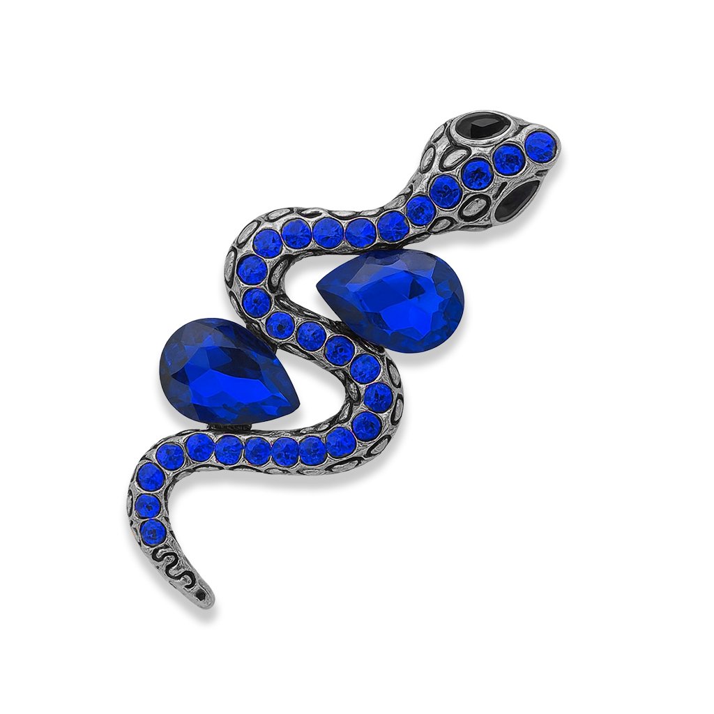Brož Serapha Saphir spojuje vznešenost modré a temnou krásu kovového lesku. Každý krystal odráží světlo s noblesou, která připomíná noční oblohu – hlubokou, nekonečnou a svůdnou. Modré kameny symbolizují rovnováhu, intuici a sílu duše, zatímco tvar hada vyjadřuje proměnu a ochranu.