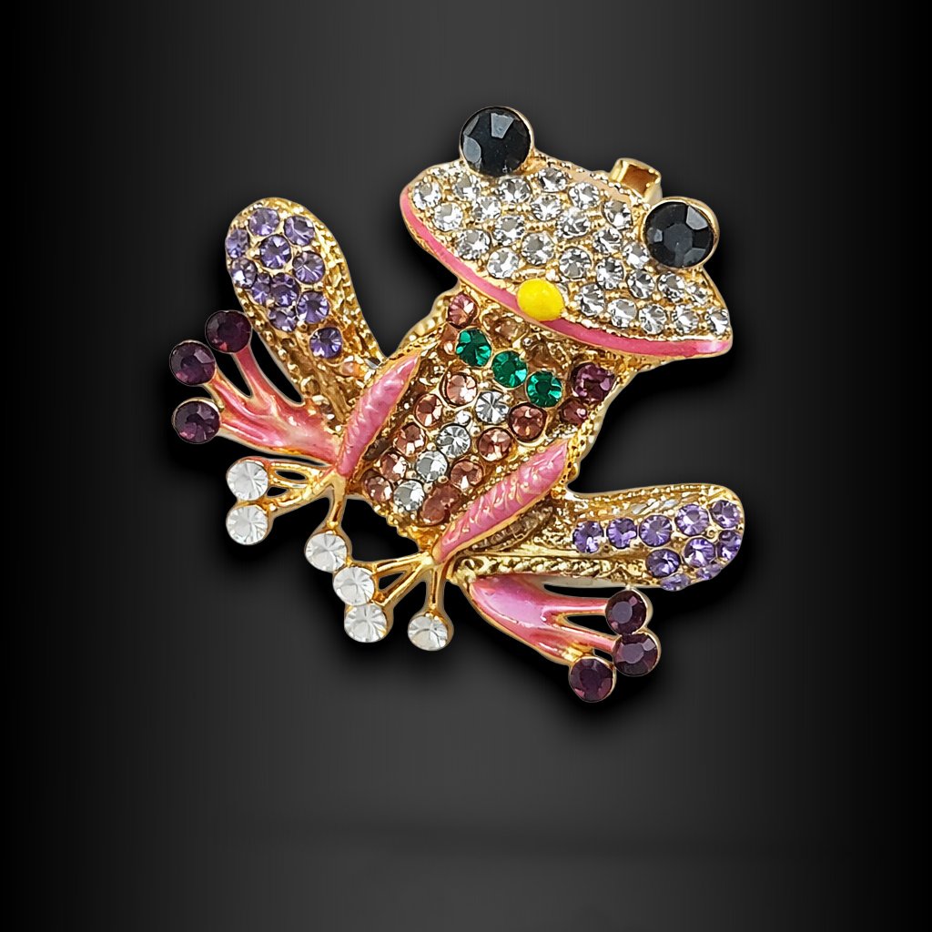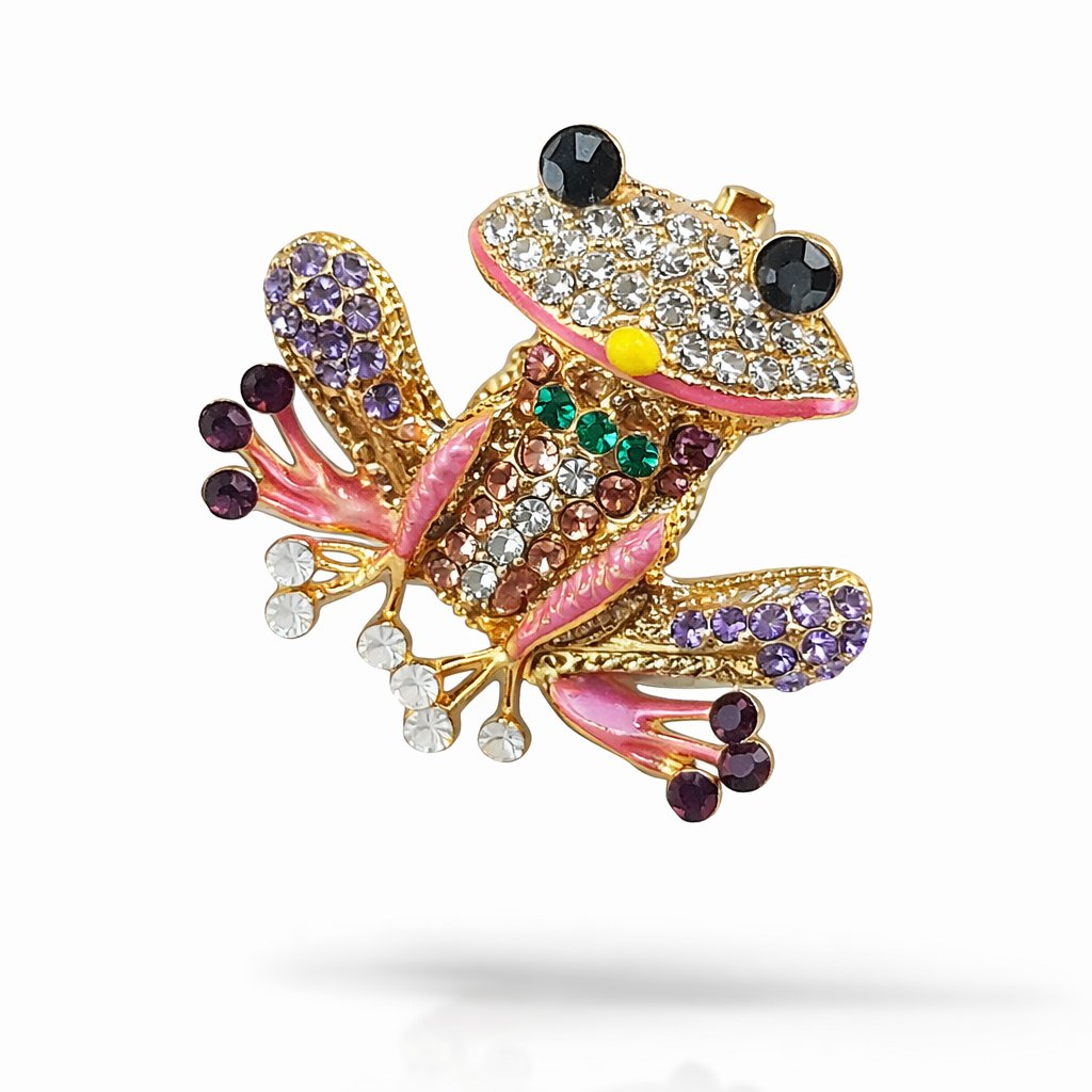 Výrazná dámská brož Talinea ve tvaru žáby zaujme bohatým zdobením zirkony a hravou kombinací barev. Nickel free provedení, precizní detaily a originální design z ní dělají nepřehlédnutelný doplněk. Každý kus je mírně originál díky jemným rozdílům v barvách a detailech 🖤 Exkluzivně na DG Šperky