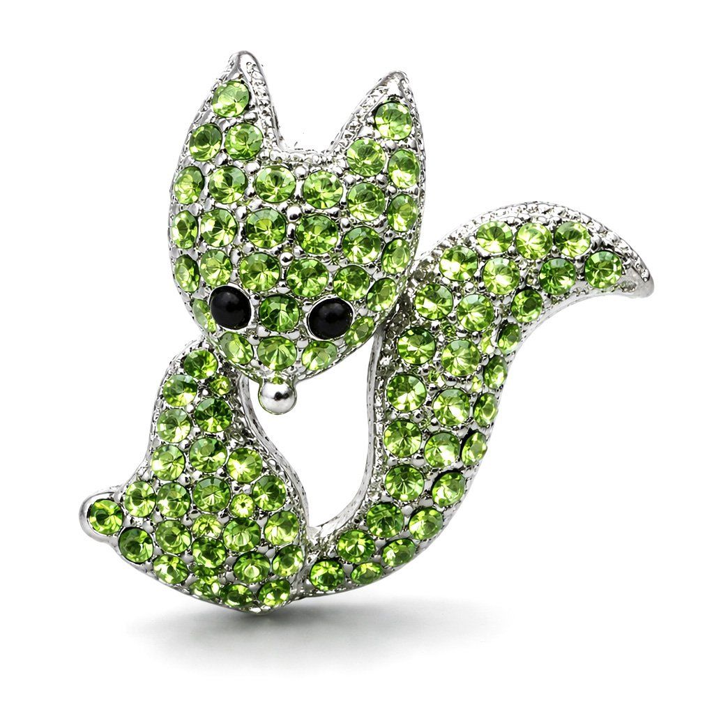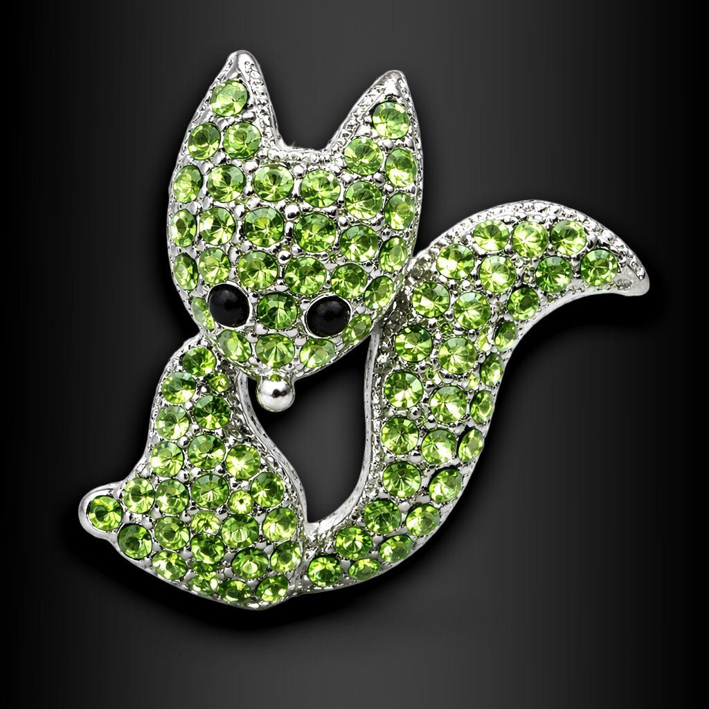 Dámská brož Valpera Green – třpytivá liška s pavé krystaly, která okouzlí na první pohled ♀️ DG Šperky