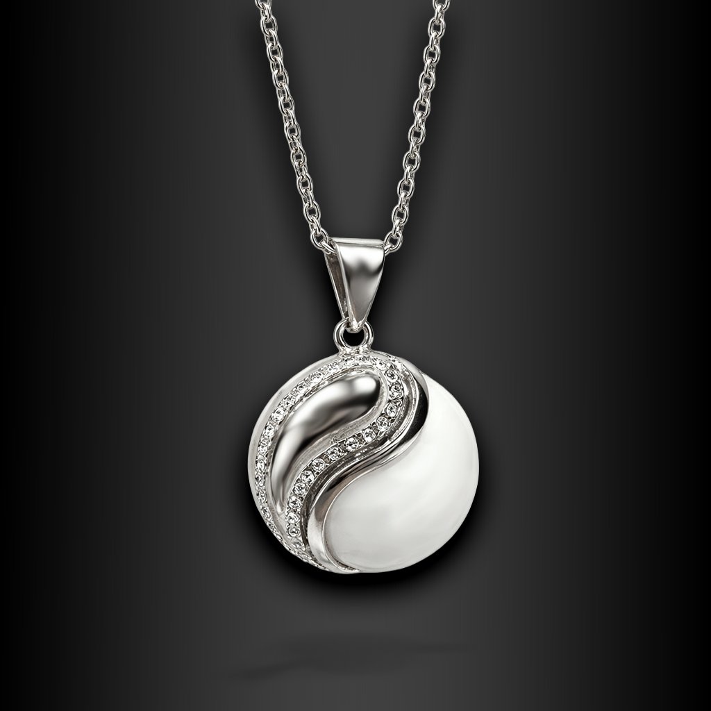 Caelia je dámský přívěsek, který staví na harmonii kontrastů – bílé plochy a jemného třpytu zirkonů. Kulatý tvar působí měkce a ženským dojmem, zatímco lesklá ocel dodává šperku moderní čistotu.