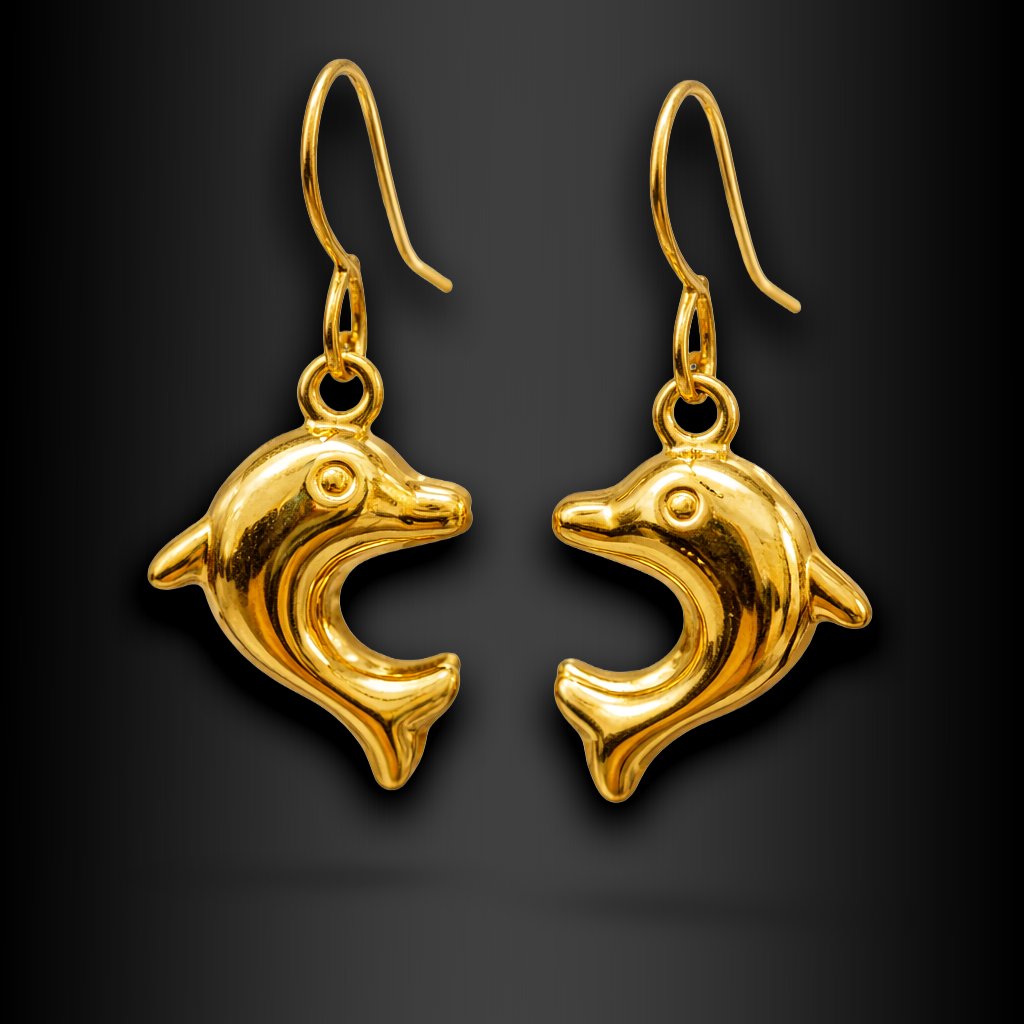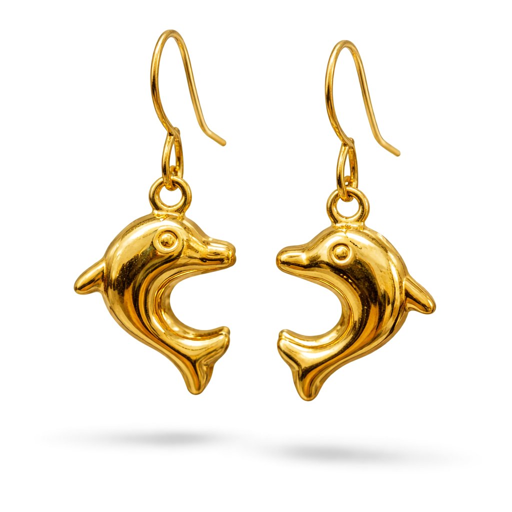 Calypra – dámské ocelové náušnice delfín v zlatém provedení ♀️ DG Šperky