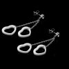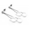 Náušnice mají malé pecičky se zirkonem, ze kterých visí řetízky s bílými keramickými srdíčky. Tyto náušnice jsou ideální pro každou příležitost a dodají vám šarm a eleganci.