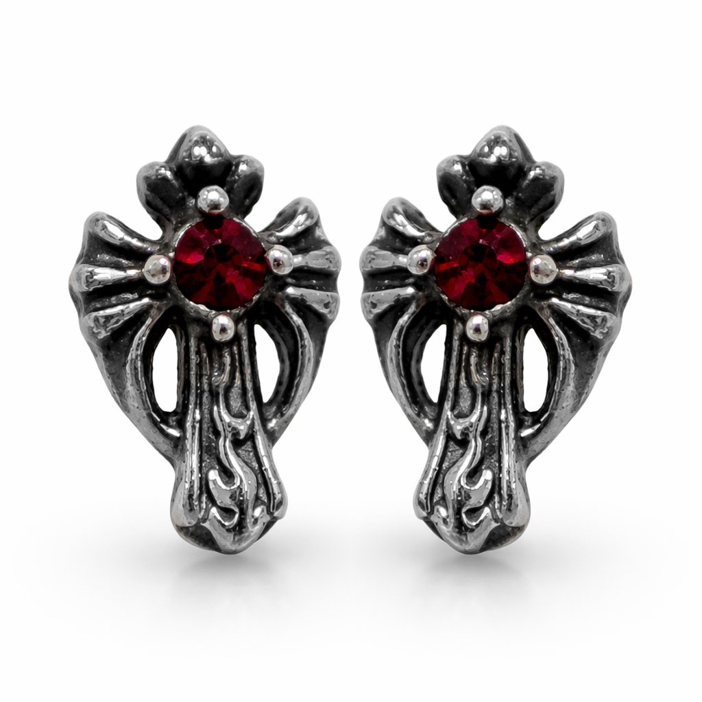 Crimora – dámské ocelové náušnice s křížem a červeným kamenem ♀️ DG Šperky