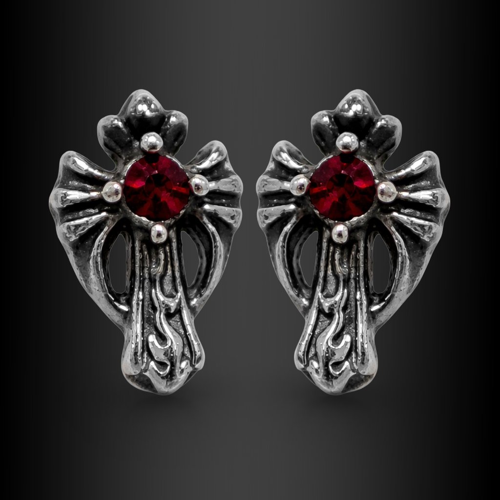 Crimora jsou dámské náušnice inspirované gotickou symbolikou, zpracované v jemné a nositelné podobě. Motiv kříže je doplněn výrazným červeným kamenem, který šperku dodává hloubku a lehce tajemný charakter.