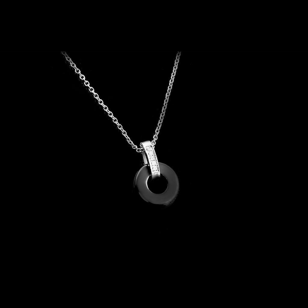 Přívěsek má kruhový tvar. Je složen z keramického kroužku a ocelového očka se zirkony. Přiložený řetízek je jemný s klasickými očky a zapínáním na karabinku.