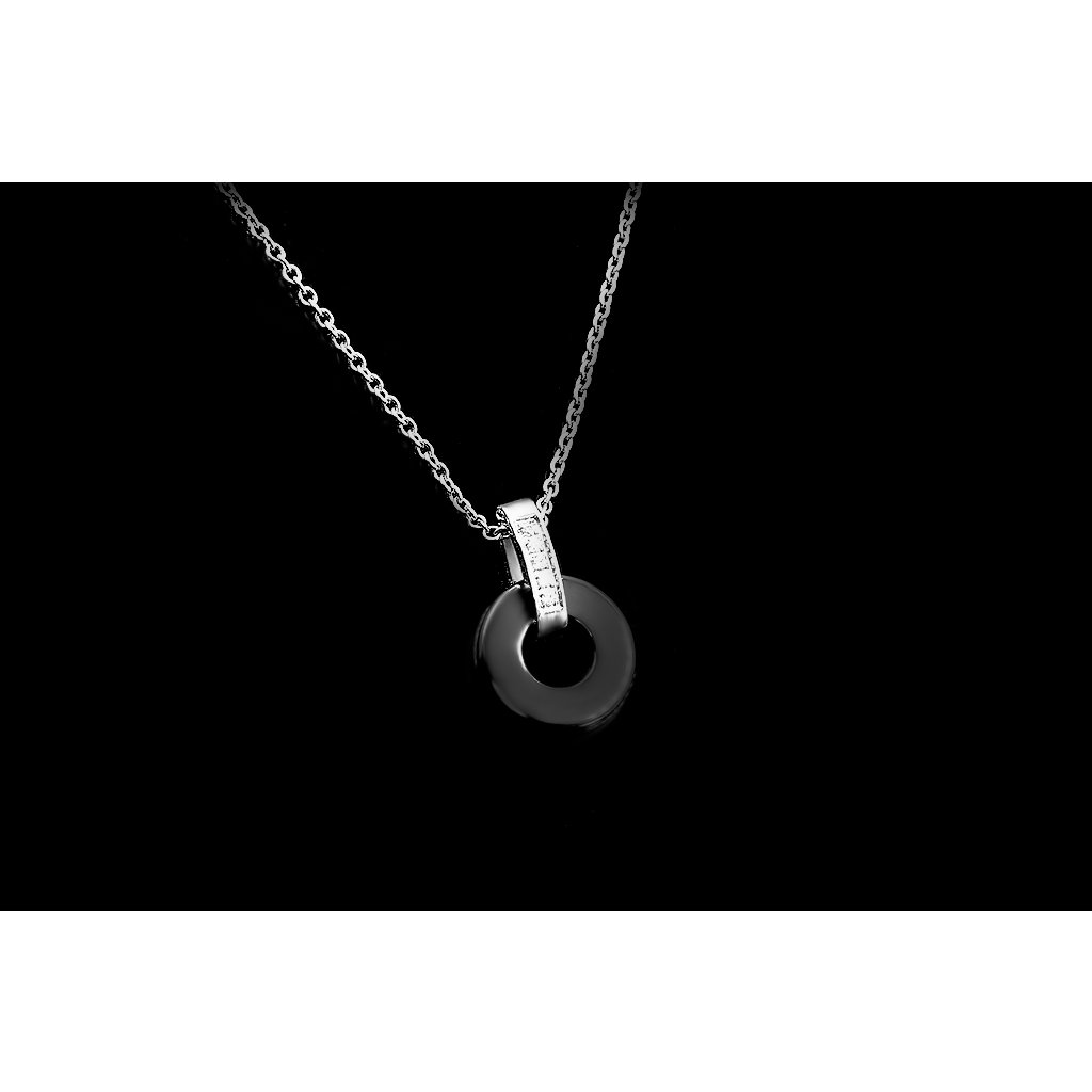 Přívěsek má kruhový tvar. Je složen z keramického kroužku a ocelového očka se zirkony. Přiložený řetízek je jemný s klasickými očky a zapínáním na karabinku.