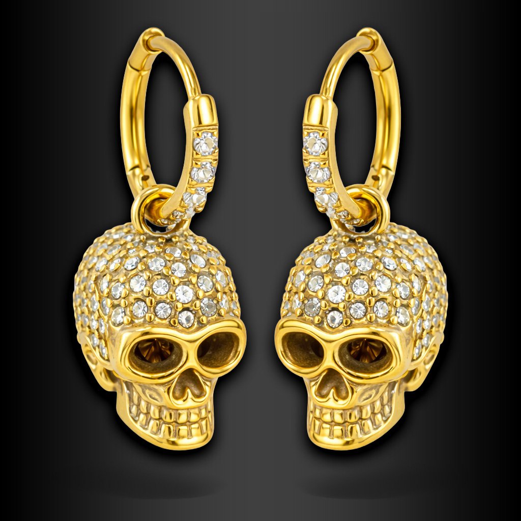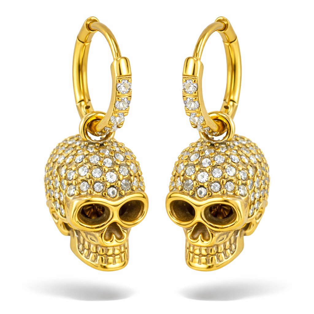 Mortéa Gold – dámské ocelové náušnice s lebkou a zirkony ♀️ DG Šperky