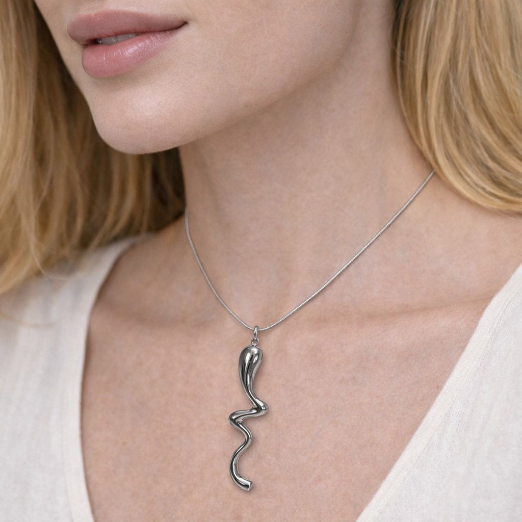 Dámský ocelový náhrdelník Anthera zaujme svým plynulým, organickým tvarem, který působí jako moderní socha. Minimalistický design podtrhuje lesklá ocel a elegantní silueta přívěsku. Díky nastavitelné délce řetízku se snadno přizpůsobí různým stylům a stane se výrazným, ale přirozeným doplňkem 🖤 Exkluzivně na DG Šperky