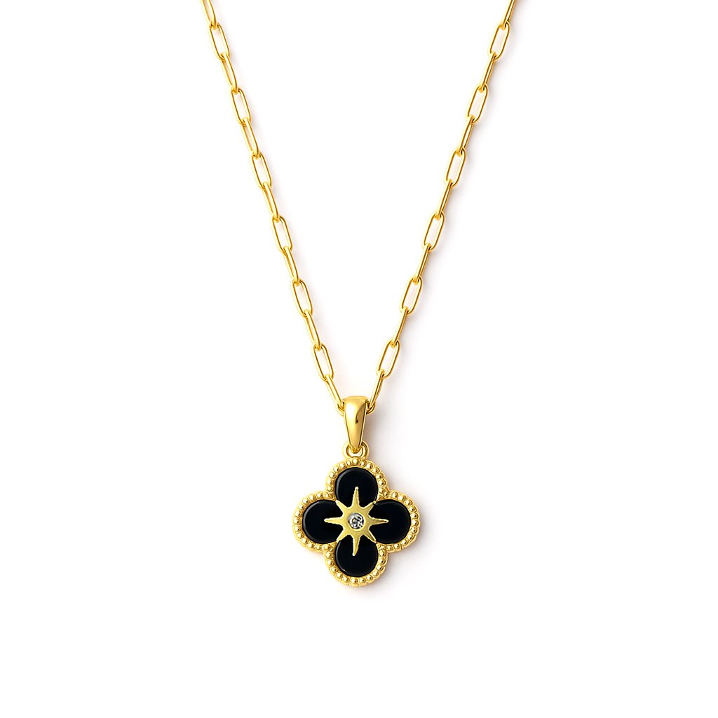 Elegantní zlatý náhrdelník v ikonickém stylu Alhambra se zářivým zirkonem – pro každý den i slavnostní chvíle 🖤 Exkluzivně na DG Šperky