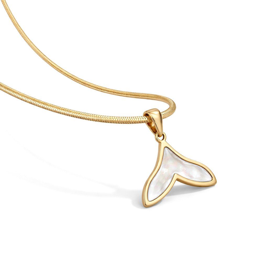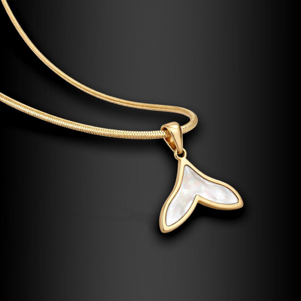 Dámský ocelový náhrdelník Calymeria Gold s perletí – přívěsek ve tvaru ploutve ♀️ DG Šperky