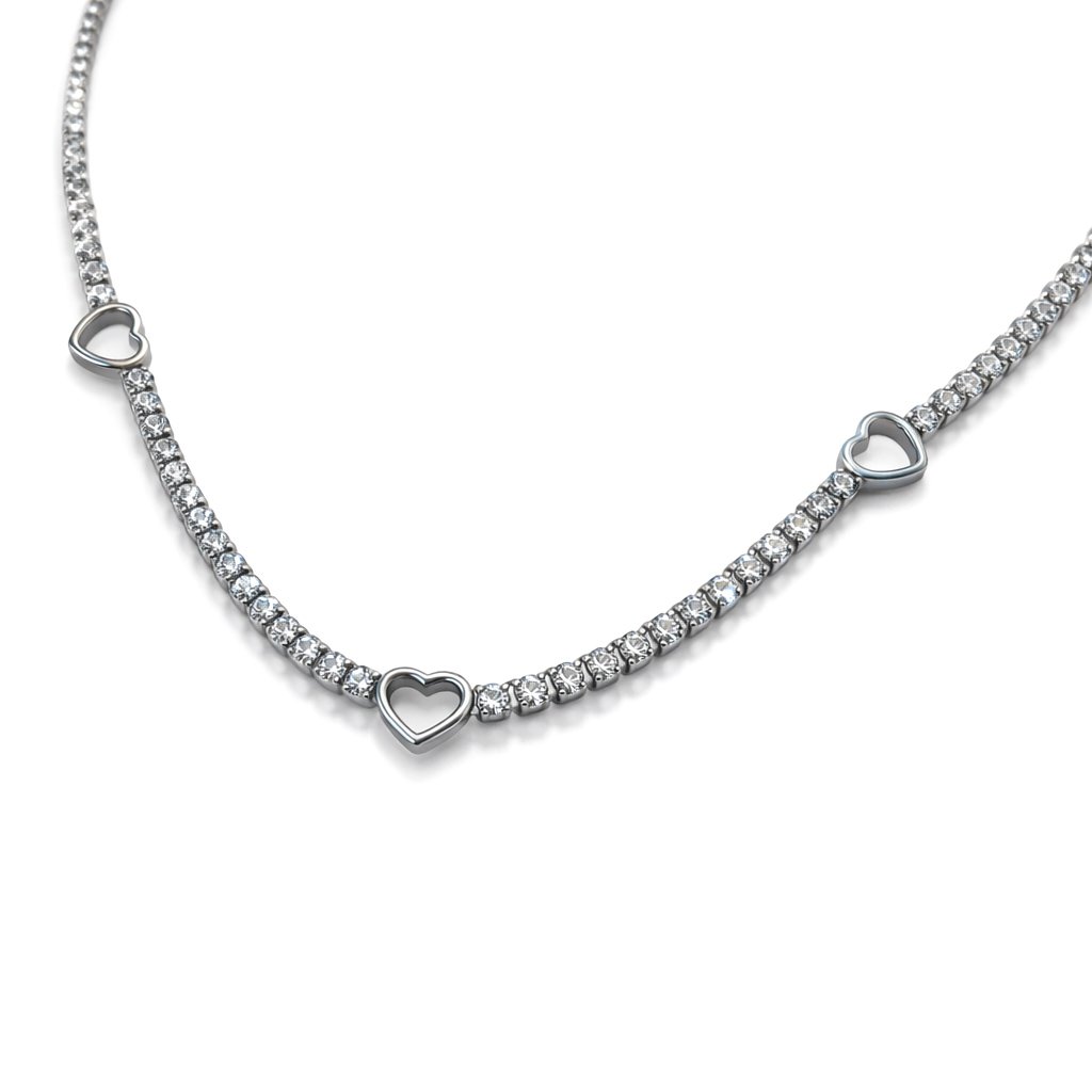 Dámský ocelový náhrdelník Candielle se zirkony a srdíčky ♀️ DG Šperky