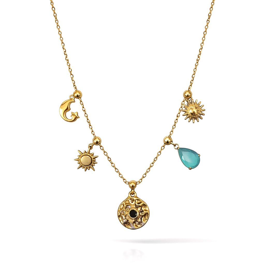 Dámský ocelový náhrdelník Elvera Gold s symbolickými přívěsky ♀️ DG Šperky
