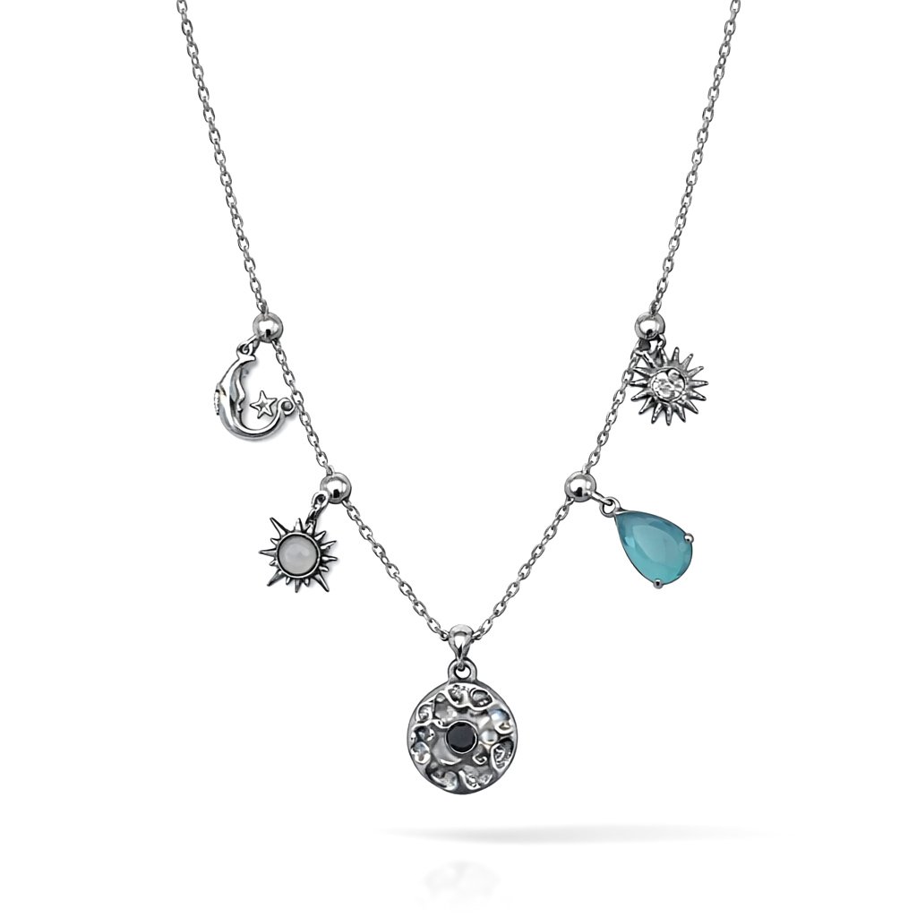 Dámský ocelový náhrdelník Elvera Silver s symbolickými přívěsky ♀️ DG Šperky