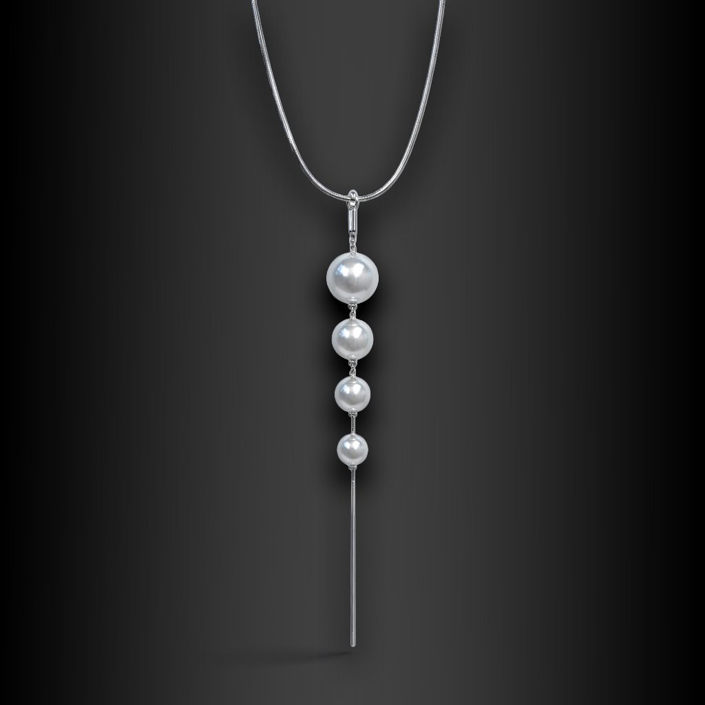Perličky jsou uspořádány do elegantní vertikální linie, která opticky prodlužuje dekolt a působí velmi žensky. Každá perla má přirozený lesk, díky kterému šperk zachytává světlo jemně, nikoli okázale. Výsledkem je moderní pojetí perel, které nepůsobí staromódně, ale svěže a současně.