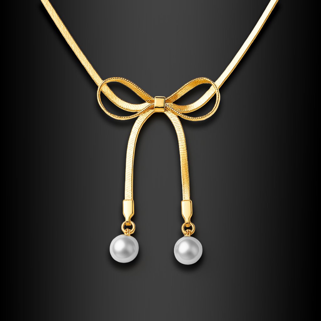 Zlatý náhrdelník s mašličkou a perlami v romantickém coquette stylu. Elegantní a nepřehlédnutelný šperk 🖤 Exkluzivně na DG Šperky