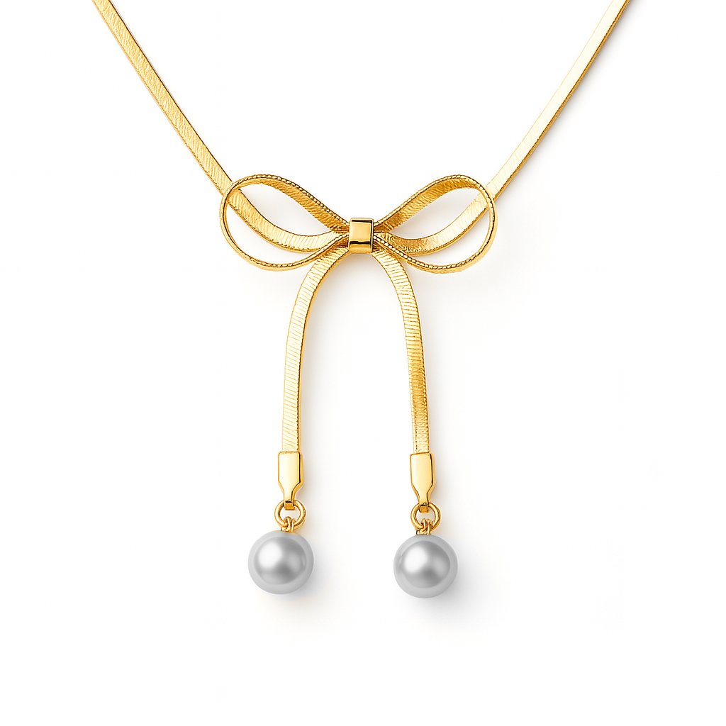 Zlatý náhrdelník s mašličkou a perlami v romantickém coquette stylu. Elegantní a nepřehlédnutelný šperk 🖤 Exkluzivně na DG Šperky