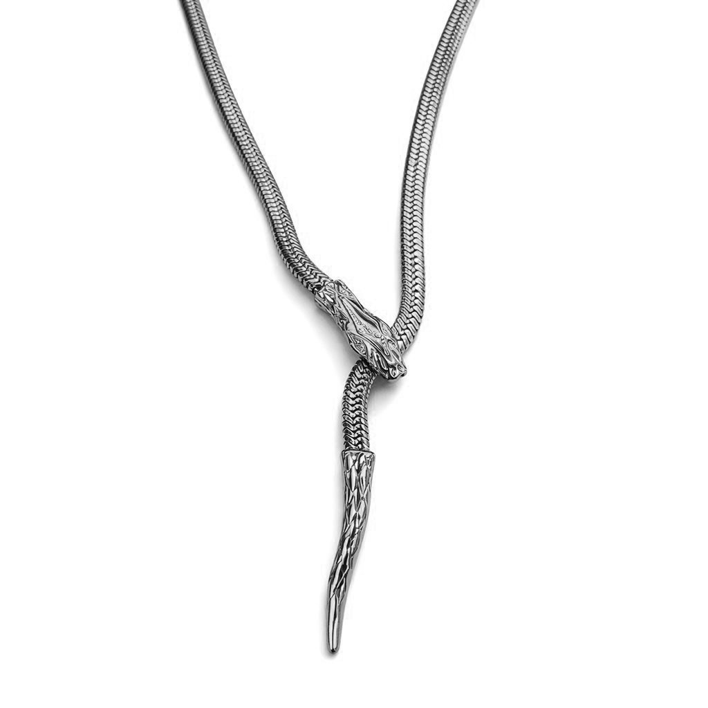 Ocelové provedení zajišťuje pevnost, tvarovou stálost a dlouhou životnost, přičemž náhrdelník zůstává pohodlný i při celodenním nošení. Povrchová úprava zvýrazňuje hadí strukturu a dodává šperku prémiový charakter.