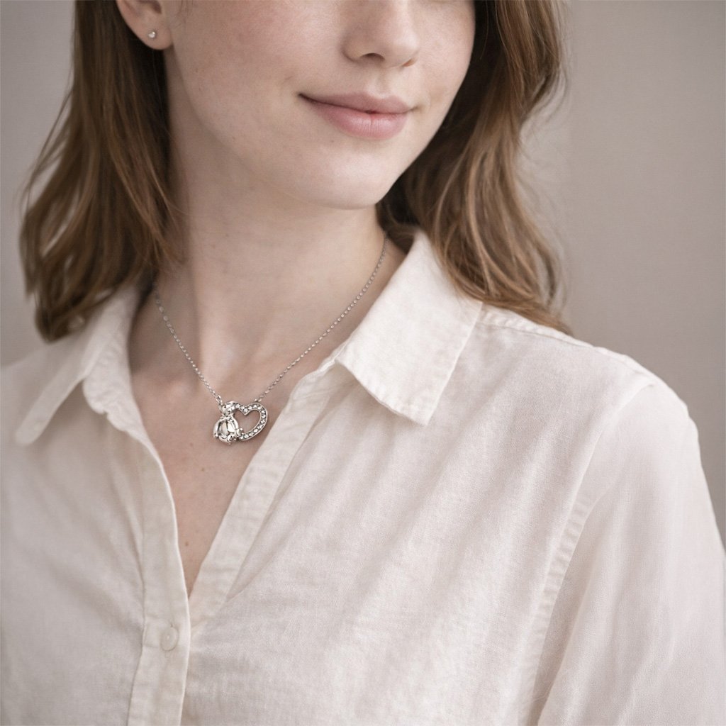 Petio je náhrdelník, který působí něžně, hravě a zároveň elegantně. Spojuje dva silné symboly – medvídka jako znak ochrany, blízkosti a bezpečí a srdíčko, které představuje lásku a cit.