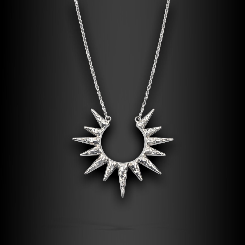 Silthera není jemný doplněk do pozadí. Je to dámský ocelový náhrdelník, který funguje jako výrazný symbol síly, individuality a vnitřní energie. Design inspirovaný sluncem působí dynamicky a sebevědomě – každý paprsek vytváří napětí, pohyb a vizuální hloubku.