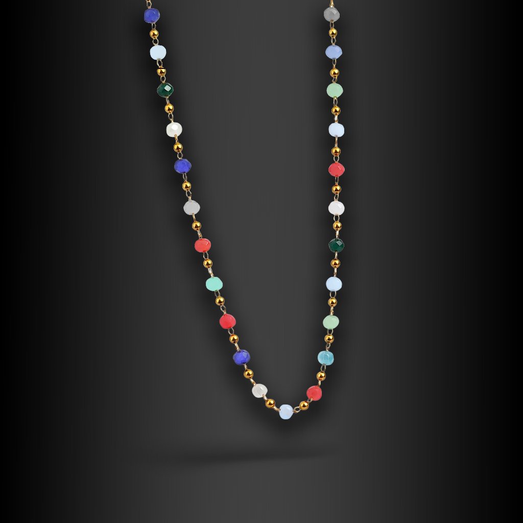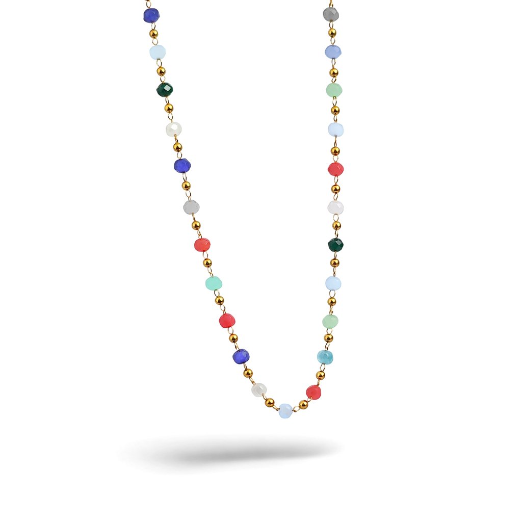 Valia je náhrdelník, který okamžitě vyvolává pocit lehké elegance a pozitivní energie. Kombinace zlatého tónu chirurgické oceli a jemných barevných korálků působí hravě, ale stále velmi vkusně. Není to šperk, který by přebíjel outfit – naopak ho přirozeně doplňuje a oživuje.