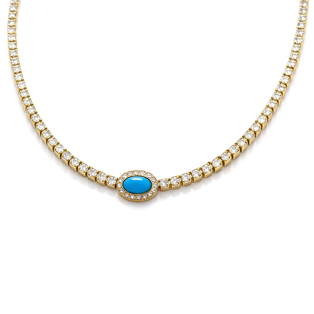Dámský luxusní ocelový náhrdelník Vivaryn Gold se zirkony a tyrkysovým kamenem ♀️ DG Šperky