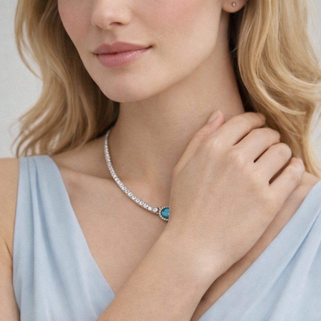 Vivaryn – luxusní dámský ocelový náhrdelník se zirkony a tyrkysovým kamenem