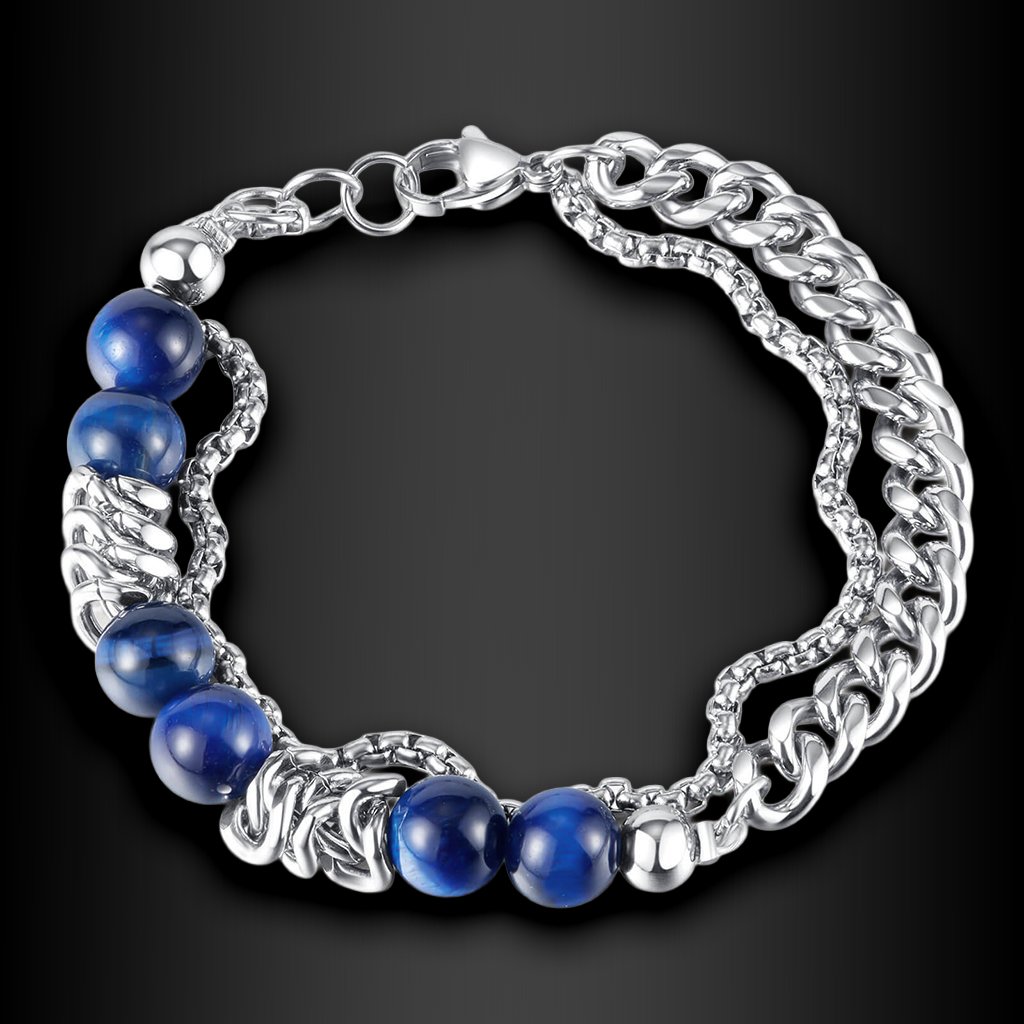 Unisex ocelový náramek Alessandro s modrými korálky tygří oko. Elegantní a jedinečný doplněk pro muže i ženy.