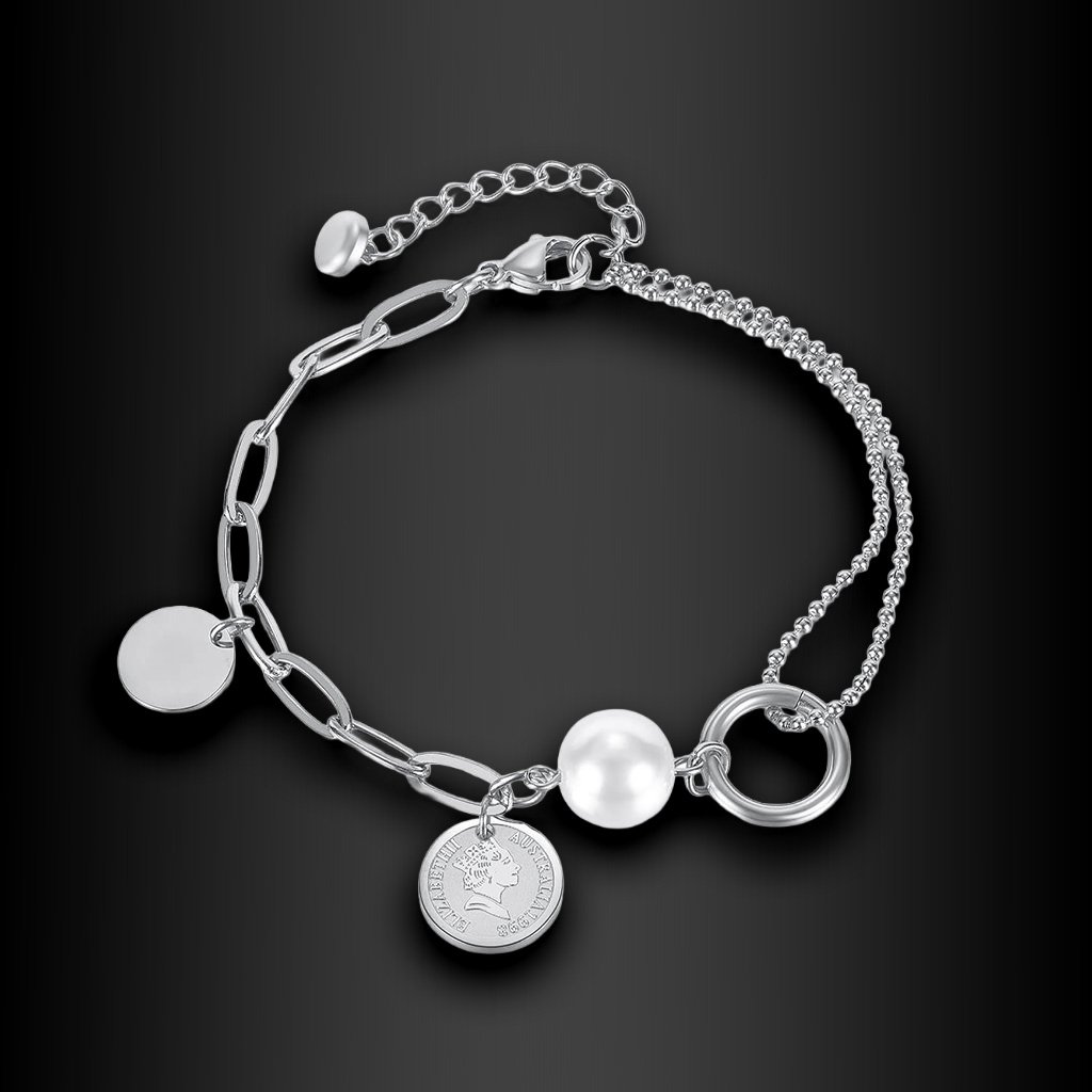 Dámský ocelový náramek Regina s perlou a portrétem královny Alžběty II. | Elegantní a jedinečný šperk pro každou ženu.