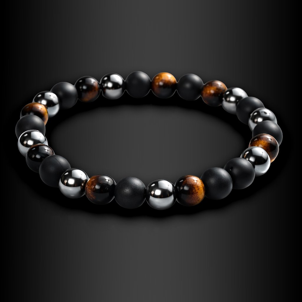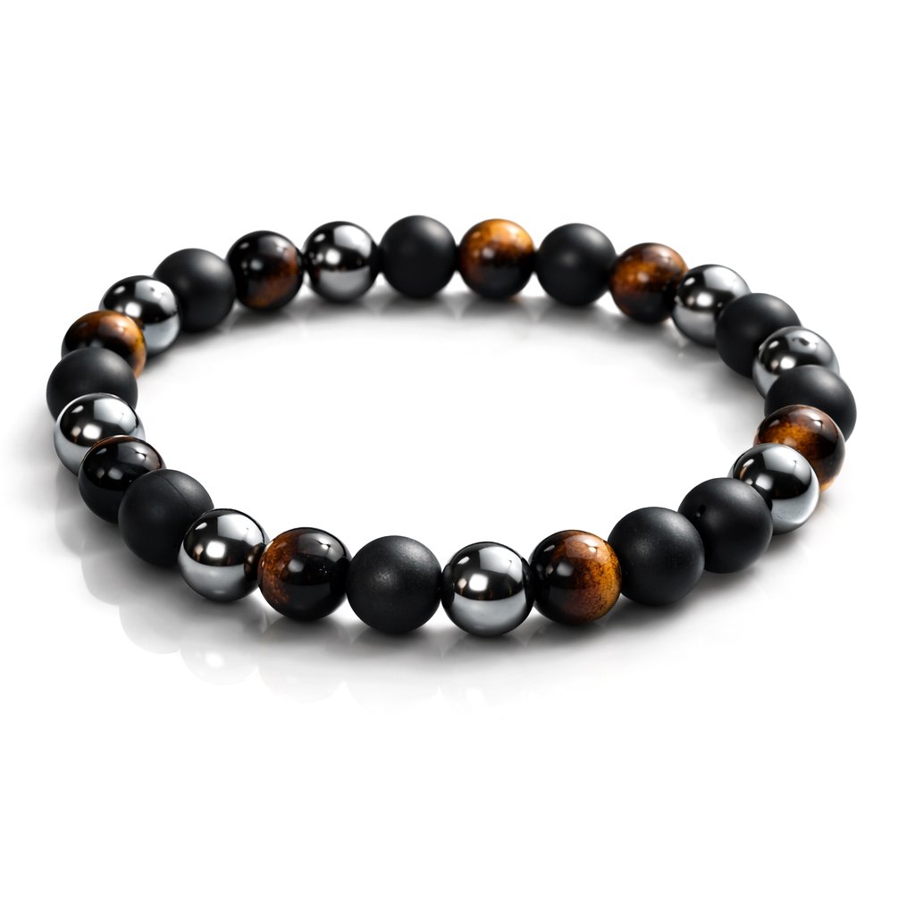 Leonar je pánský korálkový náramek navržený pro každodenní nošení. Kombinace matných a lesklých korálků doplněná o ocelové prvky vytváří vyvážený kontrast, který působí pevně, mužně a přirozeně.