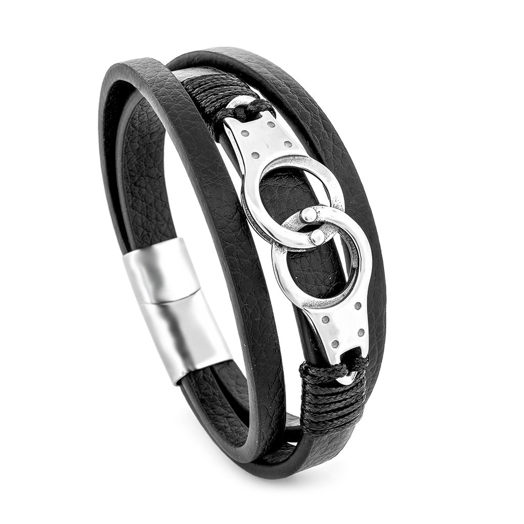 Vyčnívejte z davu s náramkem Manetto, který kombinuje černou PU kůži a chirurgickou ocel v jedinečném designu pout. Tento odvážný a stylový šperk je ideálním doplňkem pro moderního muže, který si zakládá na sebevědomí a originalitě. Tři prameny černé kůže doplněné výrazným ocelovým detailem představují dokonalou rovnováhu mezi elegancí a rebelií.