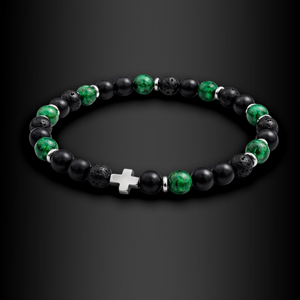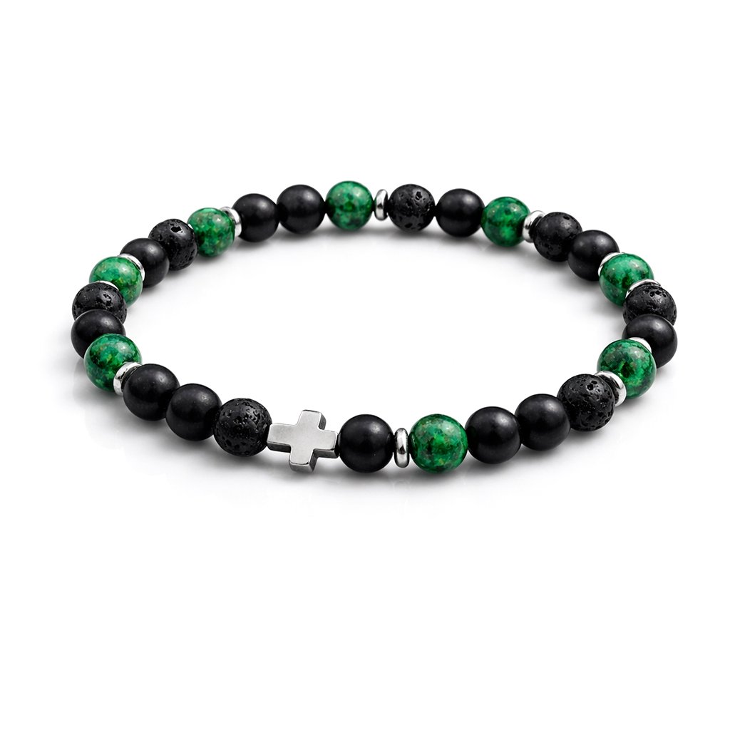 Pánský náramek Nerillo z přírodních kamenů s křížem. Symbol rovnováhy, klidu a vnitřní stability pro každý den 🖤 Exkluzivně na DG Šperky