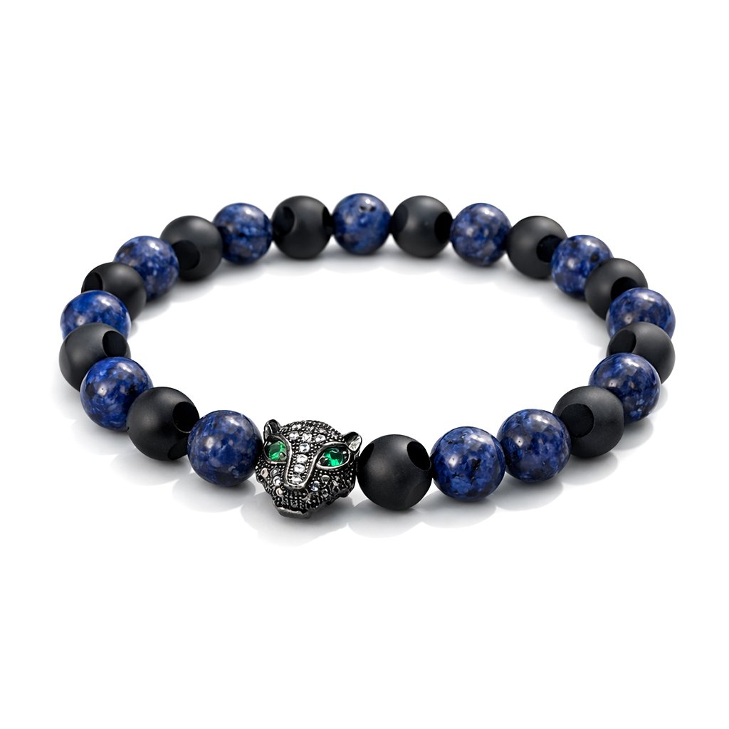 Pánský korálkový náramek Rafiro na pružném lanku s výrazným motivem šelmy ve středové ozdobě. Univerzální velikost, silný a mužný charakter 🖤 Exkluzivně na DG Šperky