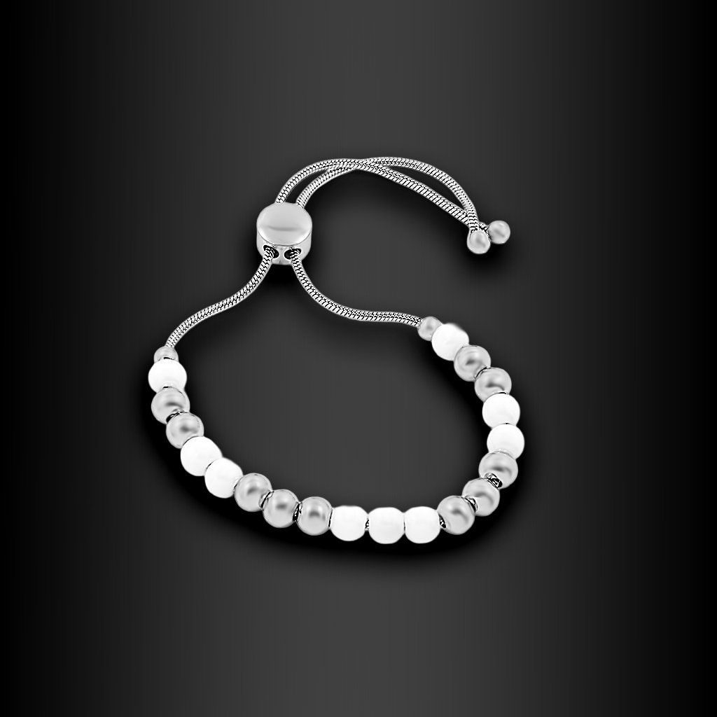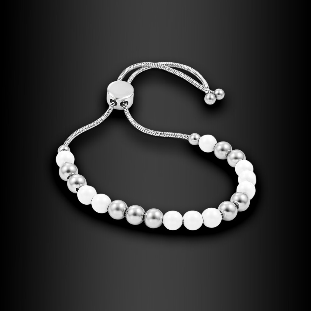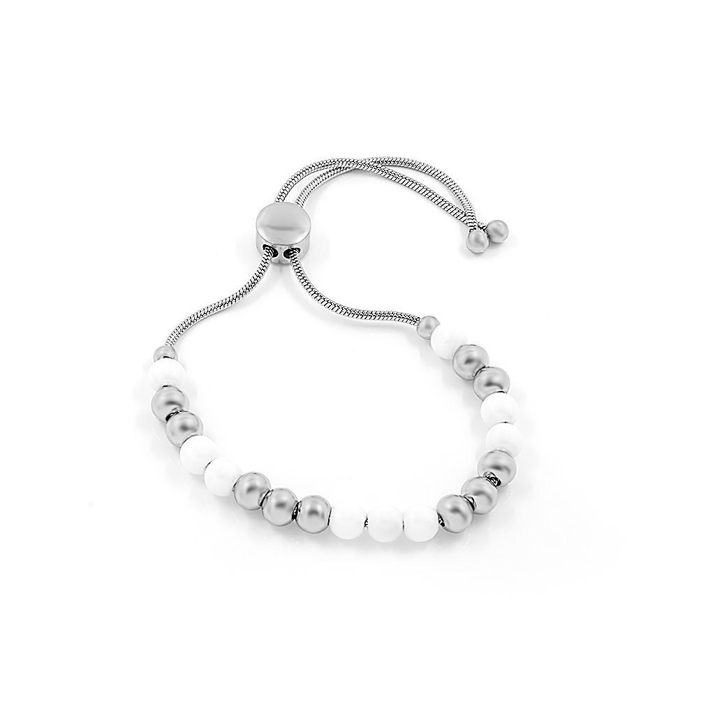 Náramek kombinuje chirurgickou ocel a šperkařskou keramiku, které spolu vytvářejí jemný kontrast bílé a stříbrné barvy. Ocelové korálky dodávají šperku stabilitu a moderní vzhled, zatímco keramika přináší lehkost, klid a vizuální čistotu.