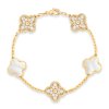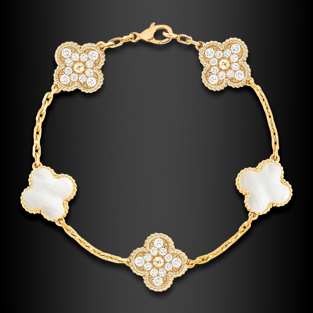 Představte si, jak se na vašem zápěstí rozprostírá magická souhra zářivých zirkonů, které zachycují každou jiskru světla, a jemné, světlem hrající perleti, která podtrhuje vaši sofistikovanost. Náramek Serena Lumina není jen šperk; je to symbol vaší vnitřní síly, charisma a schopnosti okouzlit každého, kdo se na vás podívá. Volně inspirován ikonickým a legendárním stylem Alhambra, tento náramek přináší atmosféru vytříbeného luxusu a nadčasové krásy přímo do vašeho života, avšak za cenu, která potěší.